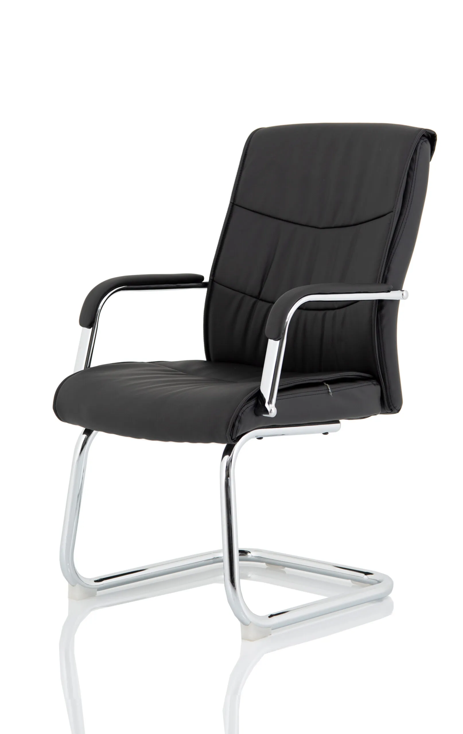 Carter Medium Back Black Leather Cantilever Visitor Office Chair with Arms