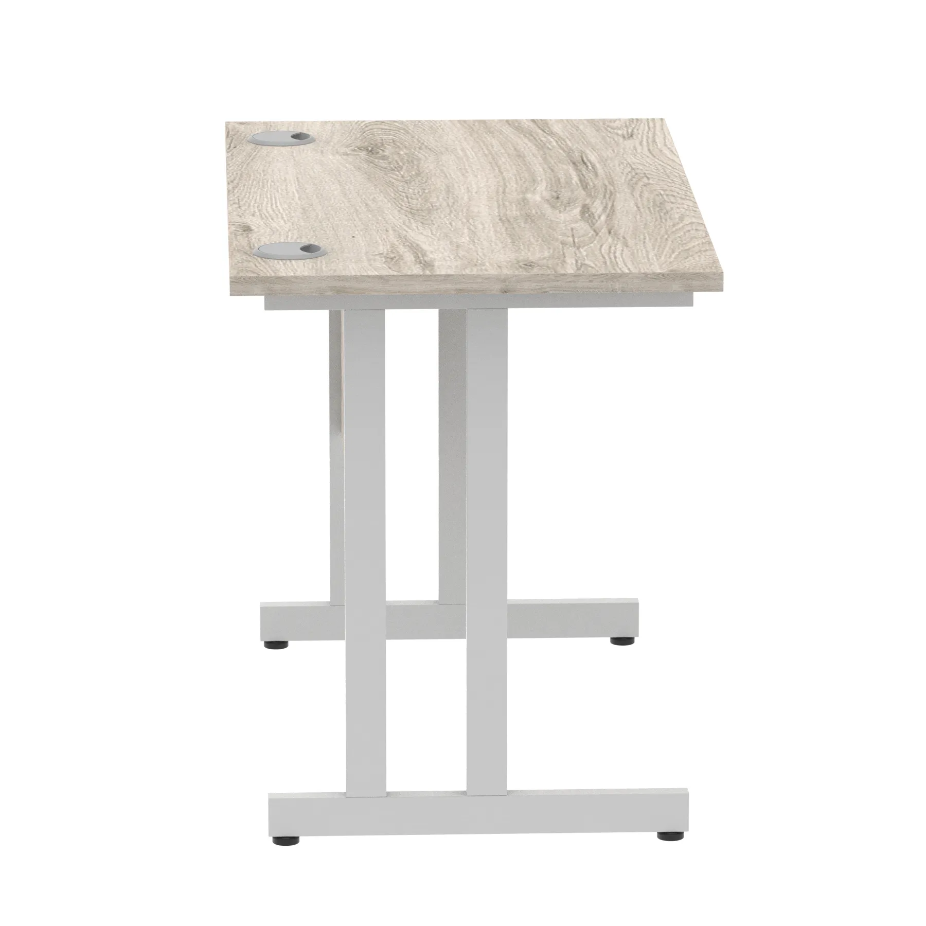 Impulse contract desk | 25mm tops | Heat resistant melamine finish | 18mm modesty panels | 2mm protective abs edging | Double strut legs | 2 cable ports | Height adjustable feet | Steel to steel fixings | 2 modesty panels slots| Deep set modesty panel (5″) allows for compatibility of most screen clamp fittings | Weight Capacity 135Kg