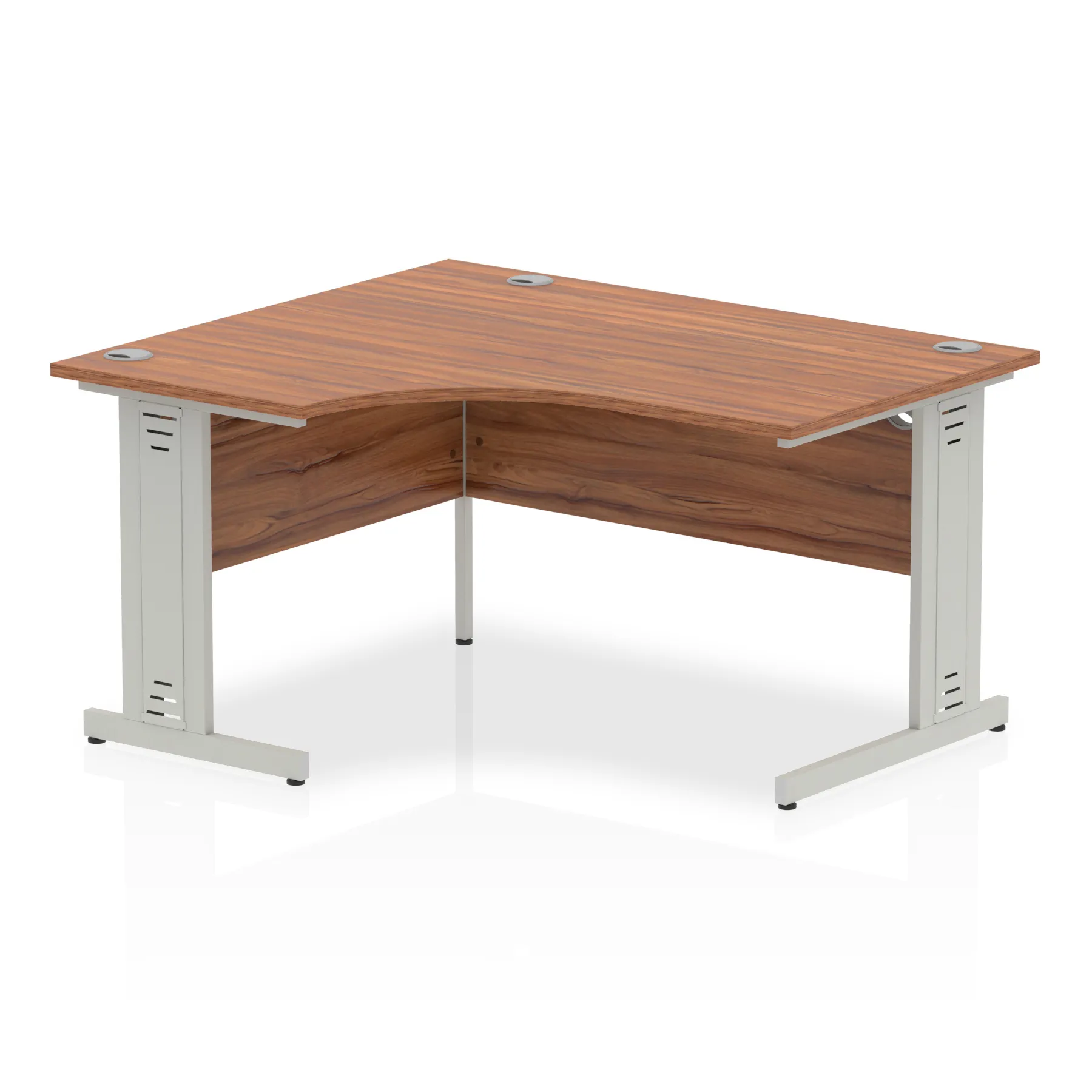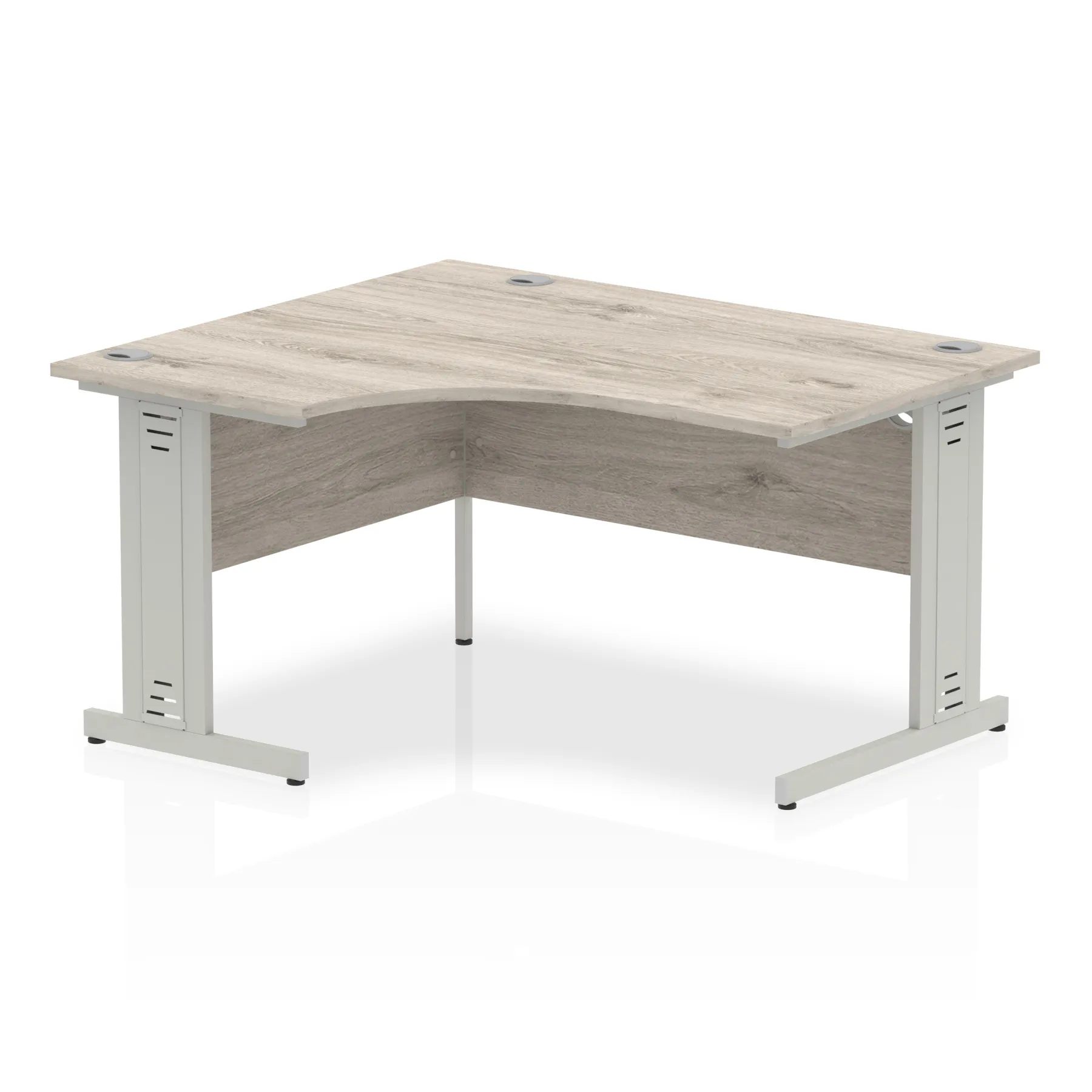 • Impulse contract 1400 wide crescent desk • 25mm tops • Heat resistant melamine finish • 18mm modesty panels • 2mm protective abs edging • Double strut legs • 3 cable ports • Height adjustable feet • Steel to steel fixings • 3 modesty panels slots • 600 deep • Deep set modesty panel (5″) allows for compatibility of most screen clamp fittings • Weight Capacity: 135Kg