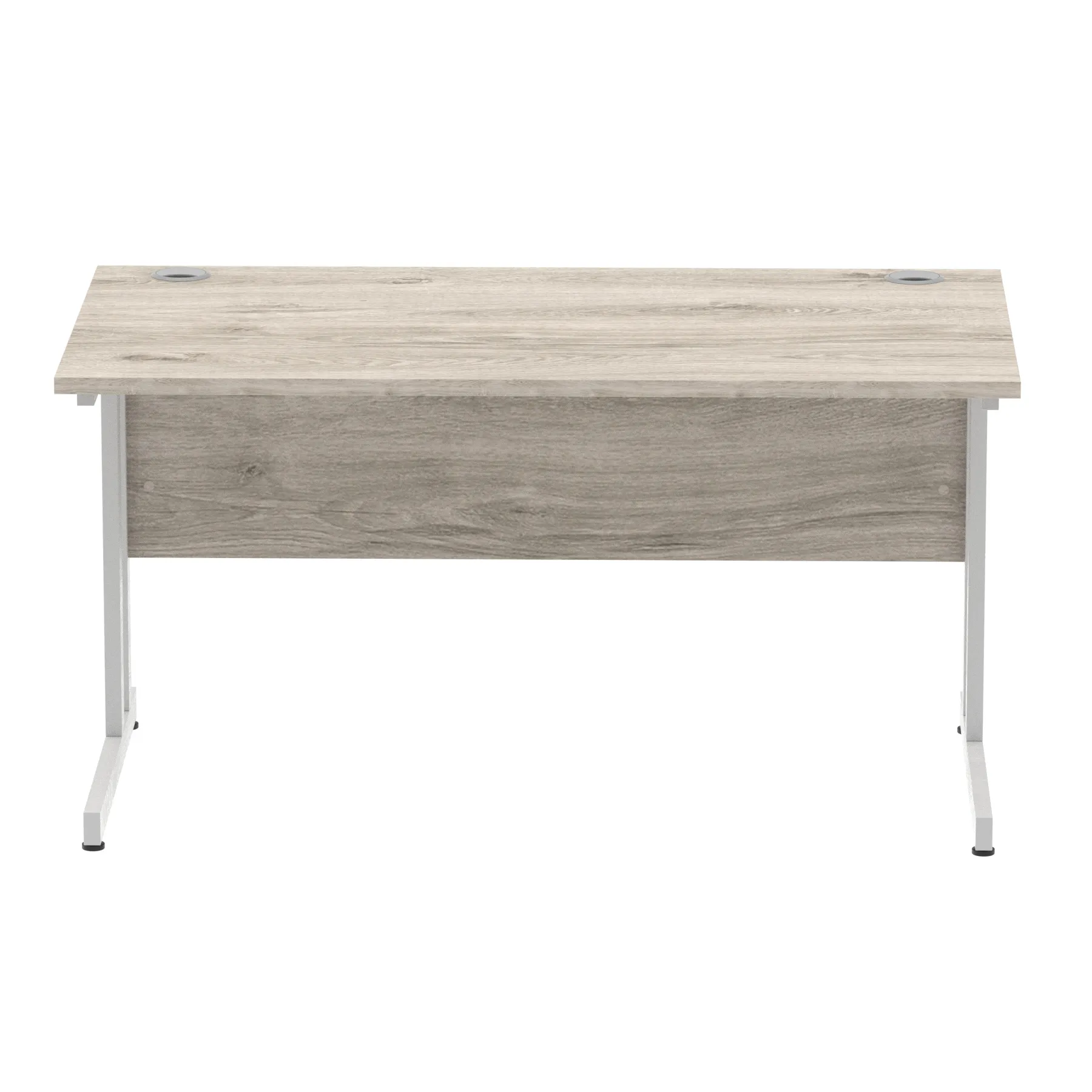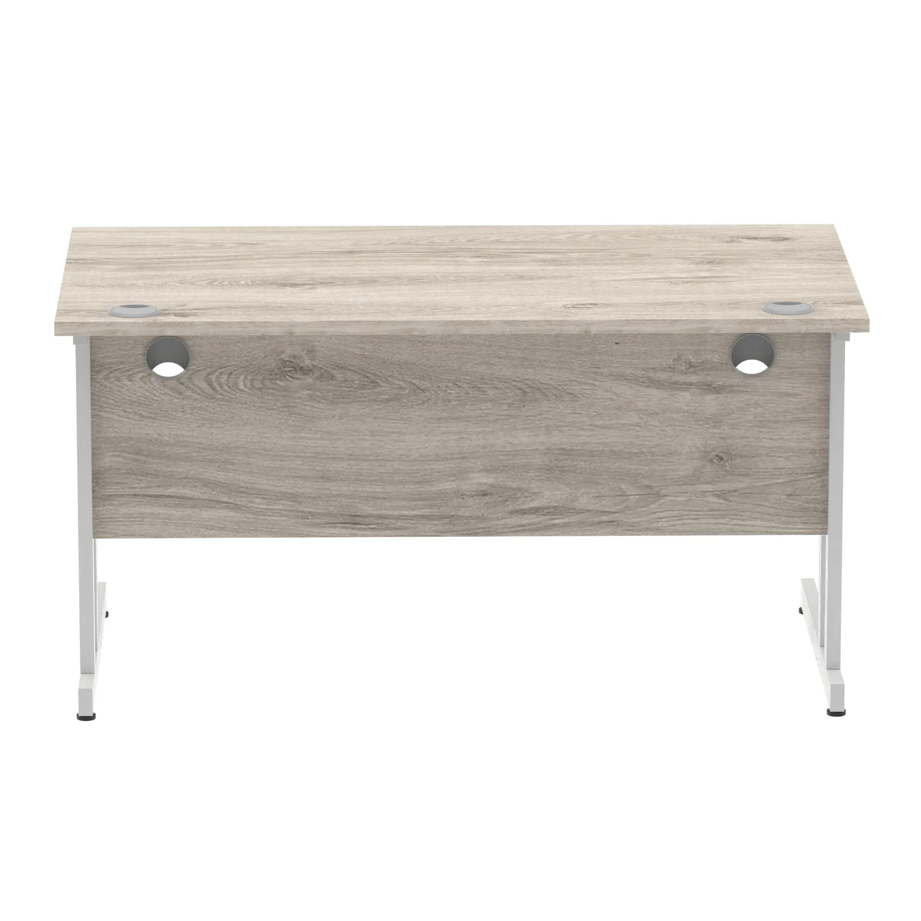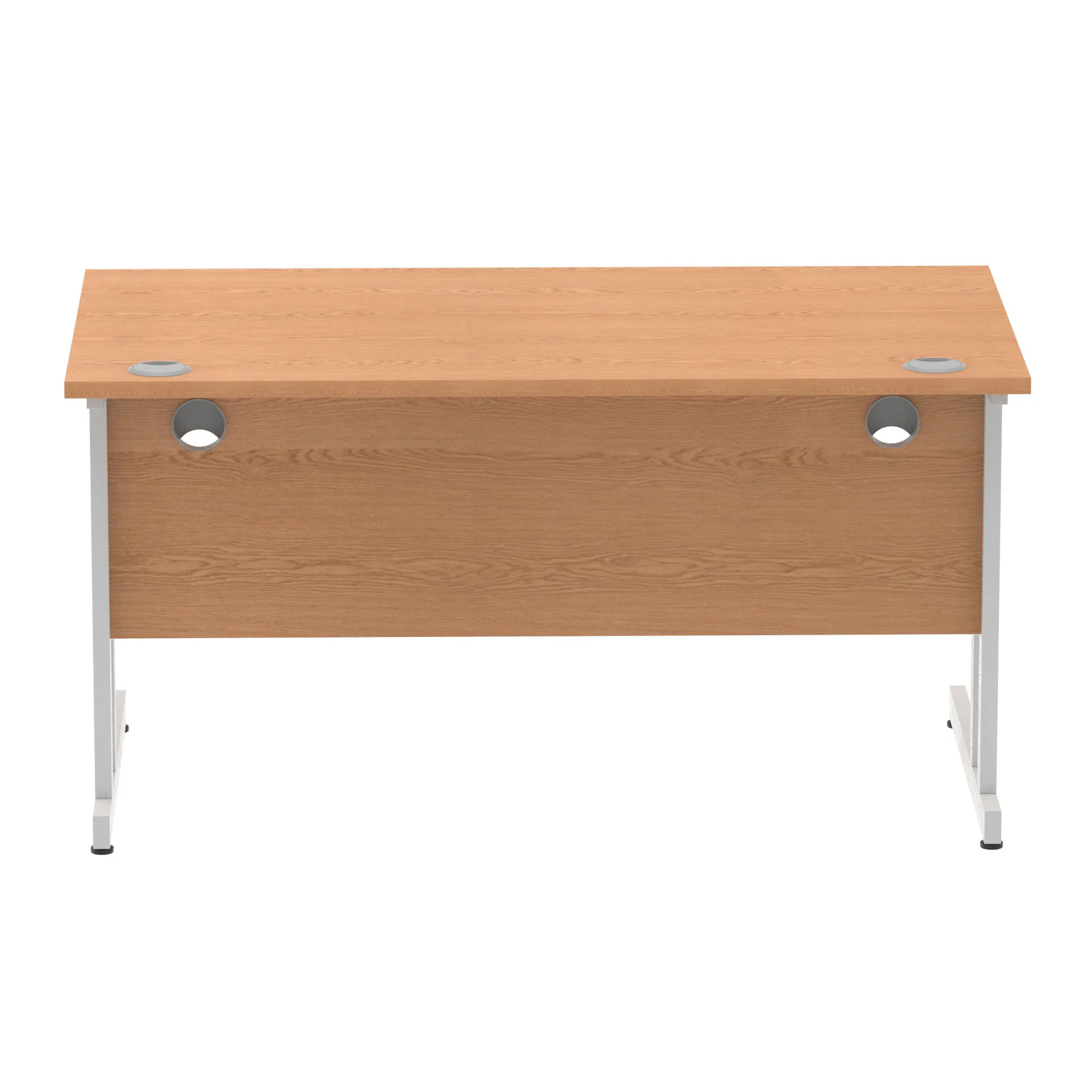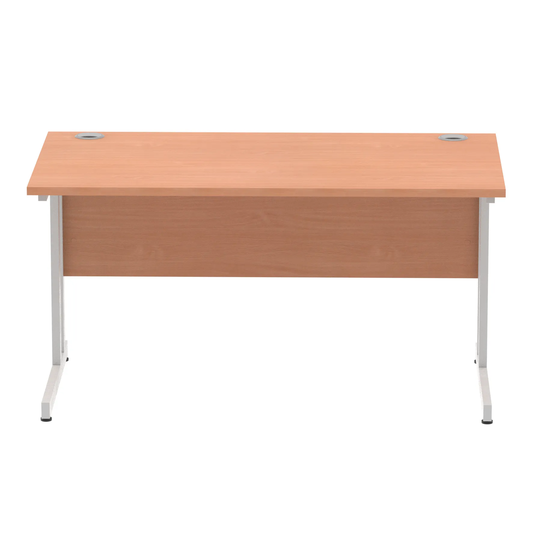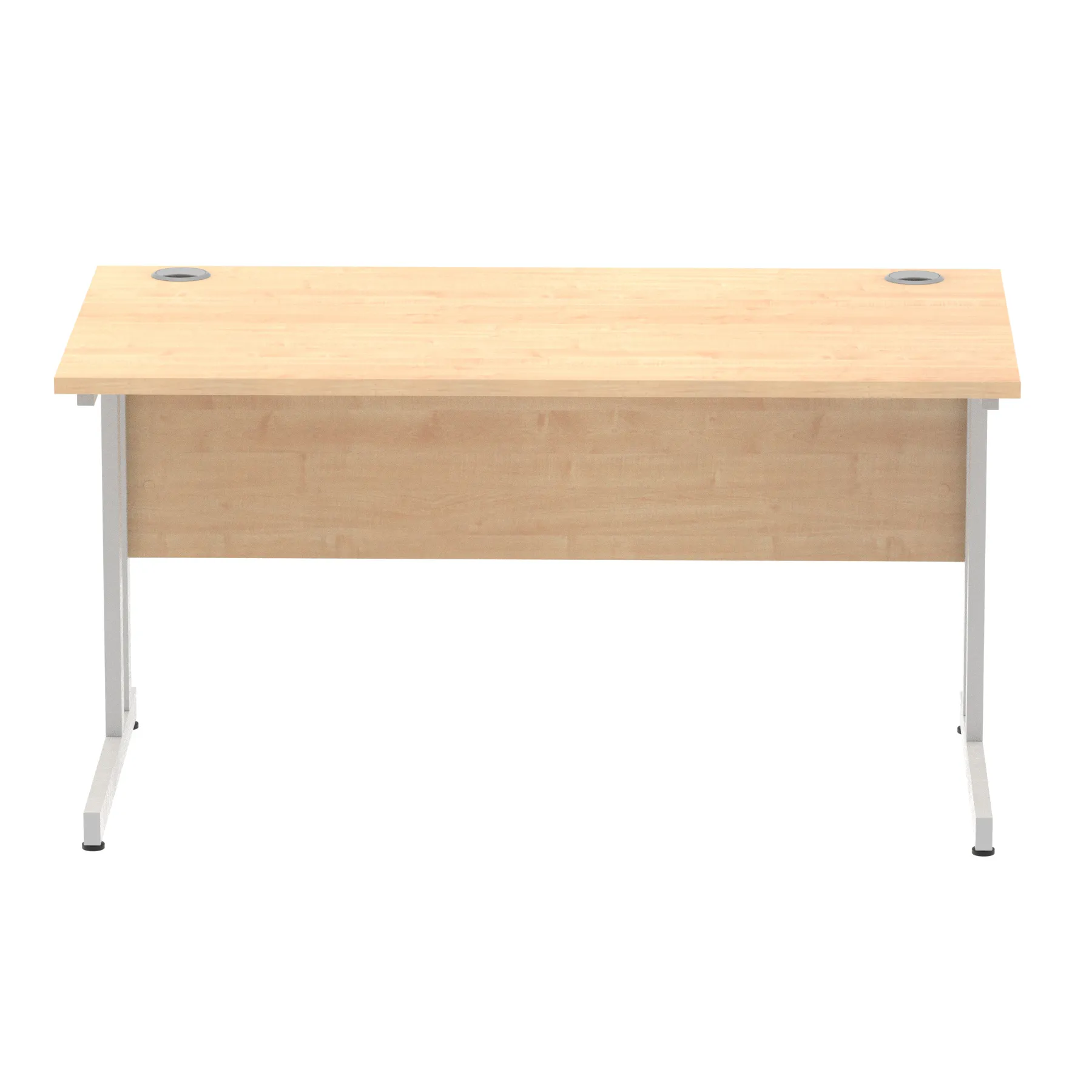 Impulse contract desk | 25mm tops | Heat resistant melamine finish | 18mm modesty panels | 2mm protective abs edging | Silver coated double strut legs | 2 cable ports | Height adjustable feet | Steel to steel fixings | 2 modesty panels slots |Deep set modesty panel (5″) allows for compatibility of most screen clamp fittings | Weight Capacity 135Kg