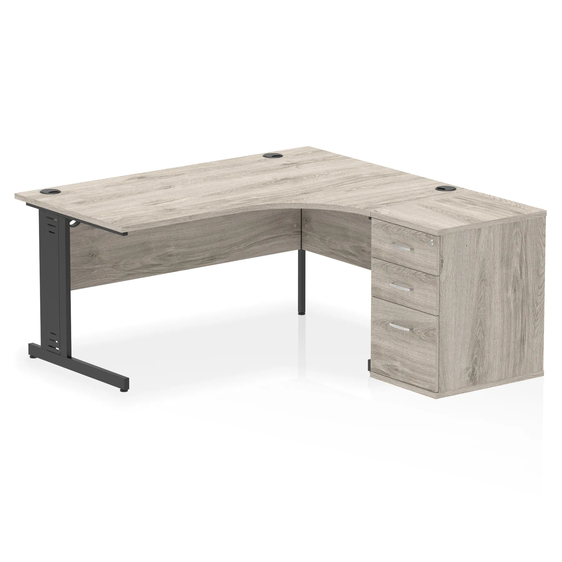 • Impulse contract workstation • 25mm tops • Desk and pedestal combined • Heat resistant melamine finish • 18mm modesty panel • 2mm protective abs edging • Double strut legs • Multiple cable ports • Height adjustable feet • Steel to steel fixings • Modesty panel slots wire slots • Deep set modesty panel (5″) allows for compatibility of most screen clamp fittings