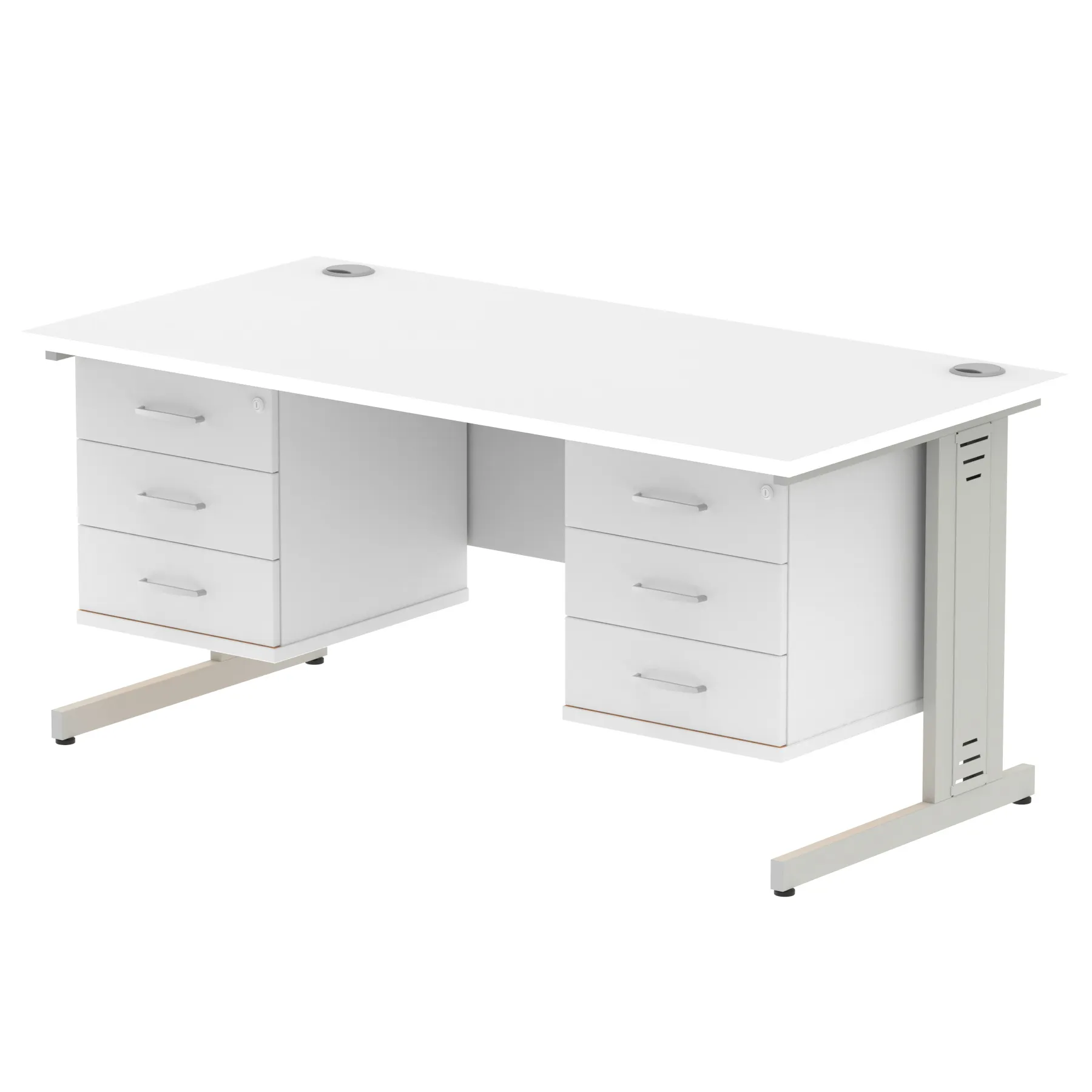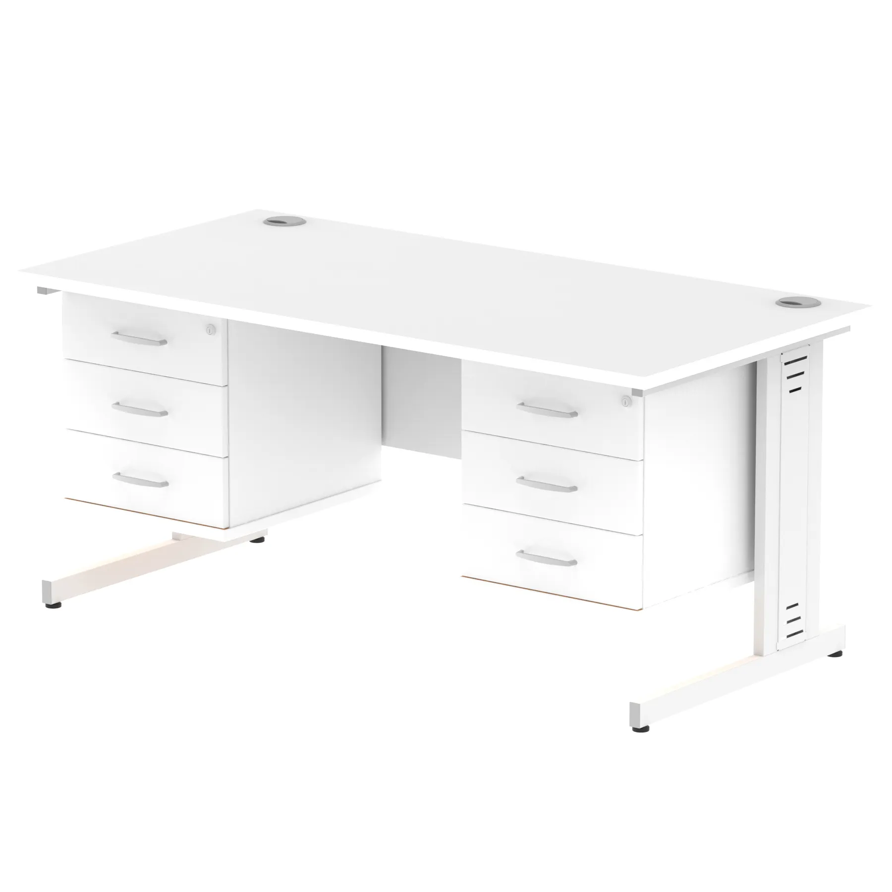 Impulse 1600mm Cable Managed Straight Desk With Two Fixed Pedestal