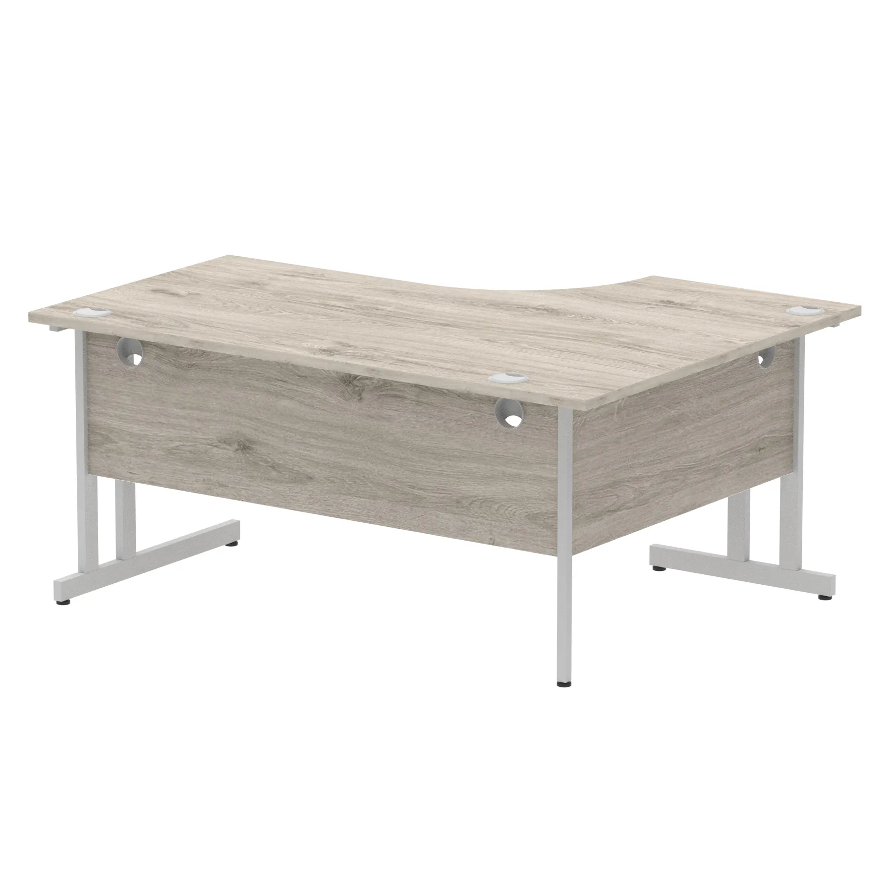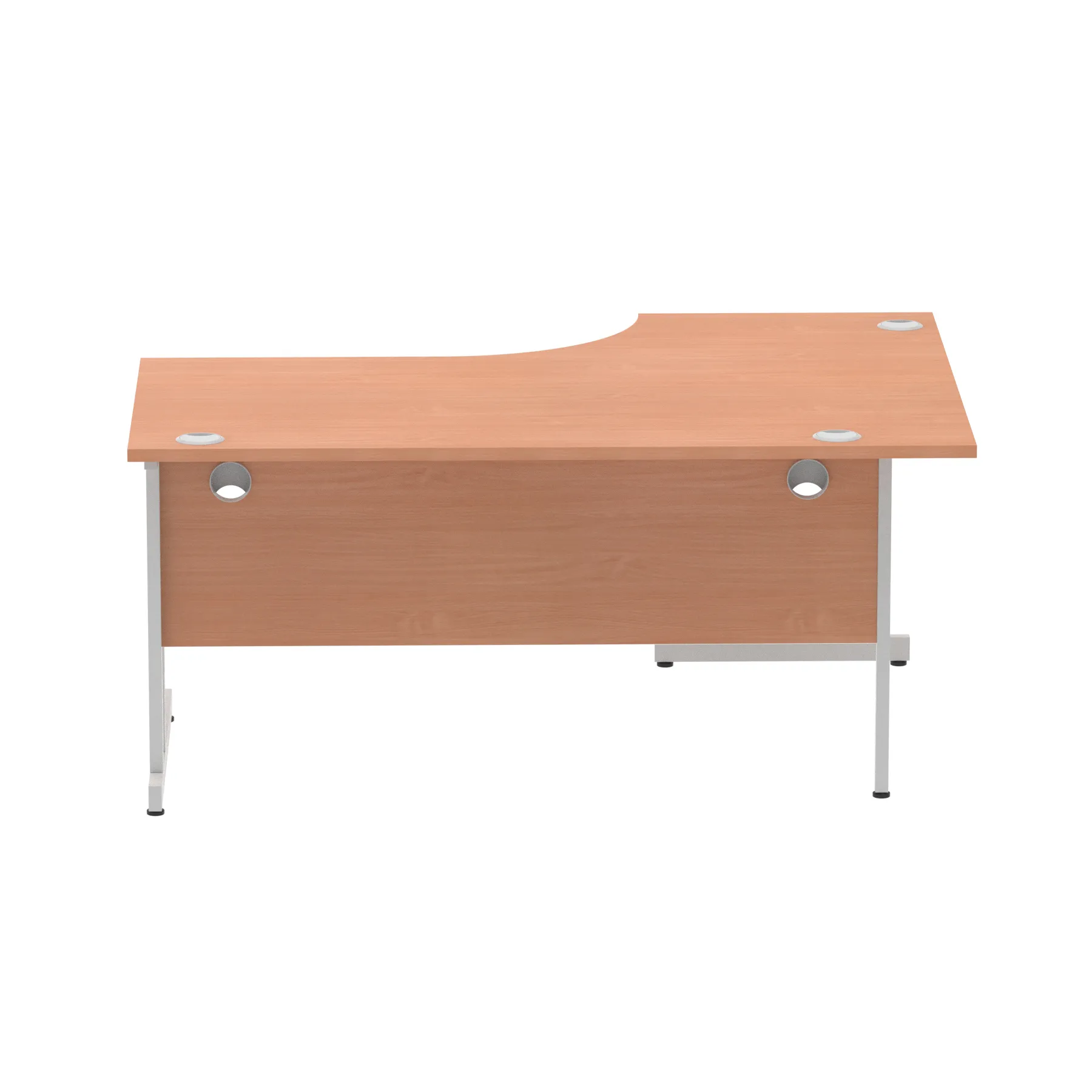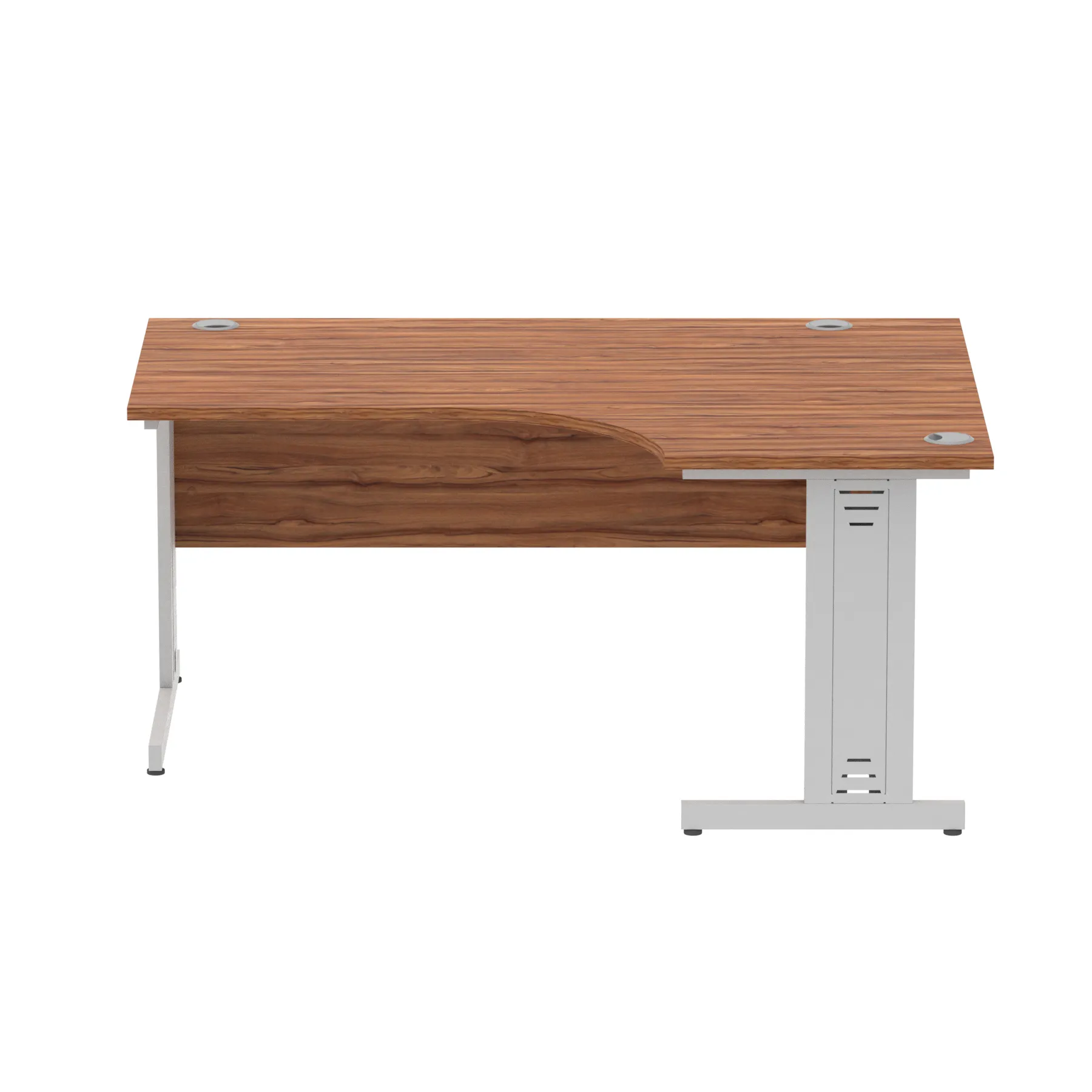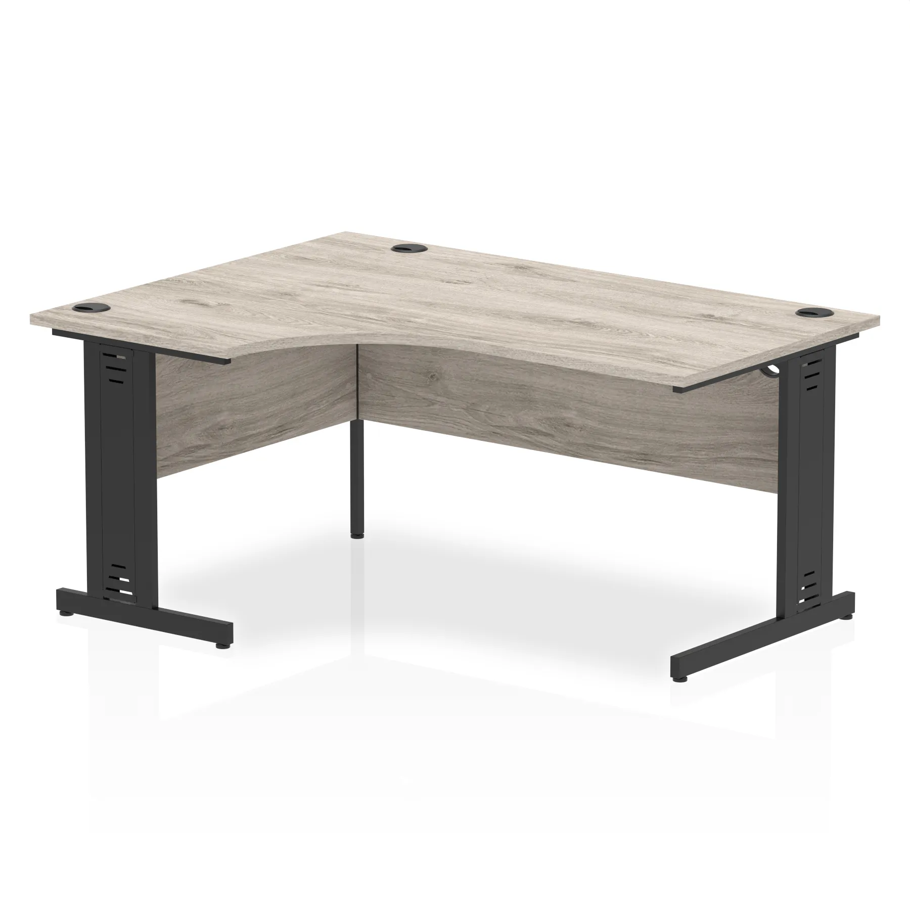 • Impulse contract 1600 wide crescent desk • 25mm tops • Heat resistant melamine finish • 18mm modesty panels • 2mm protective abs edging • Double strut legs • 3 cable ports • Height adjustable feet • Steel to steel fixings • 3 modesty panels slots • 600 deep • Deep set modesty panel (5″) allows for compatibility of most screen clamp fittings • Weight Capacity: 135Kg