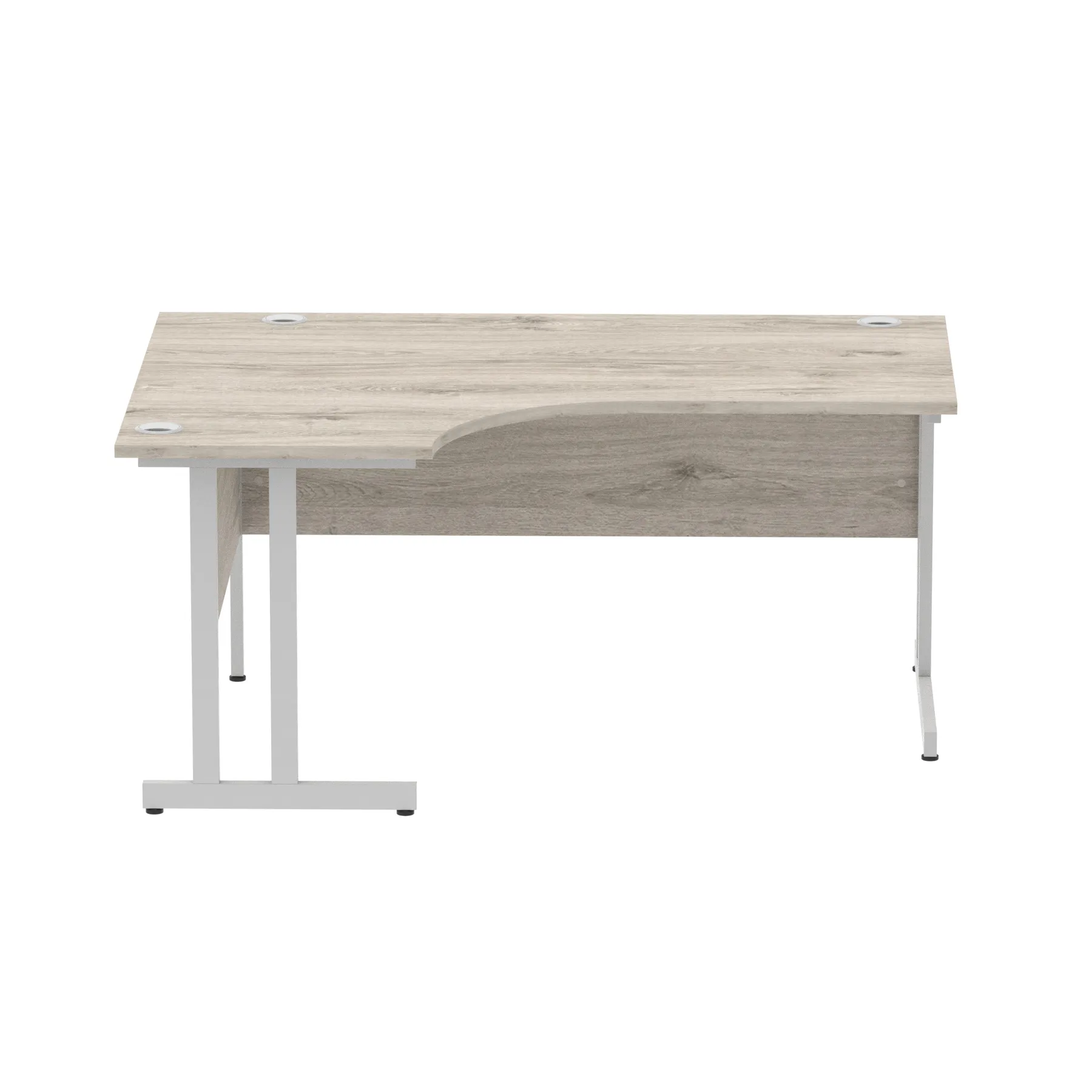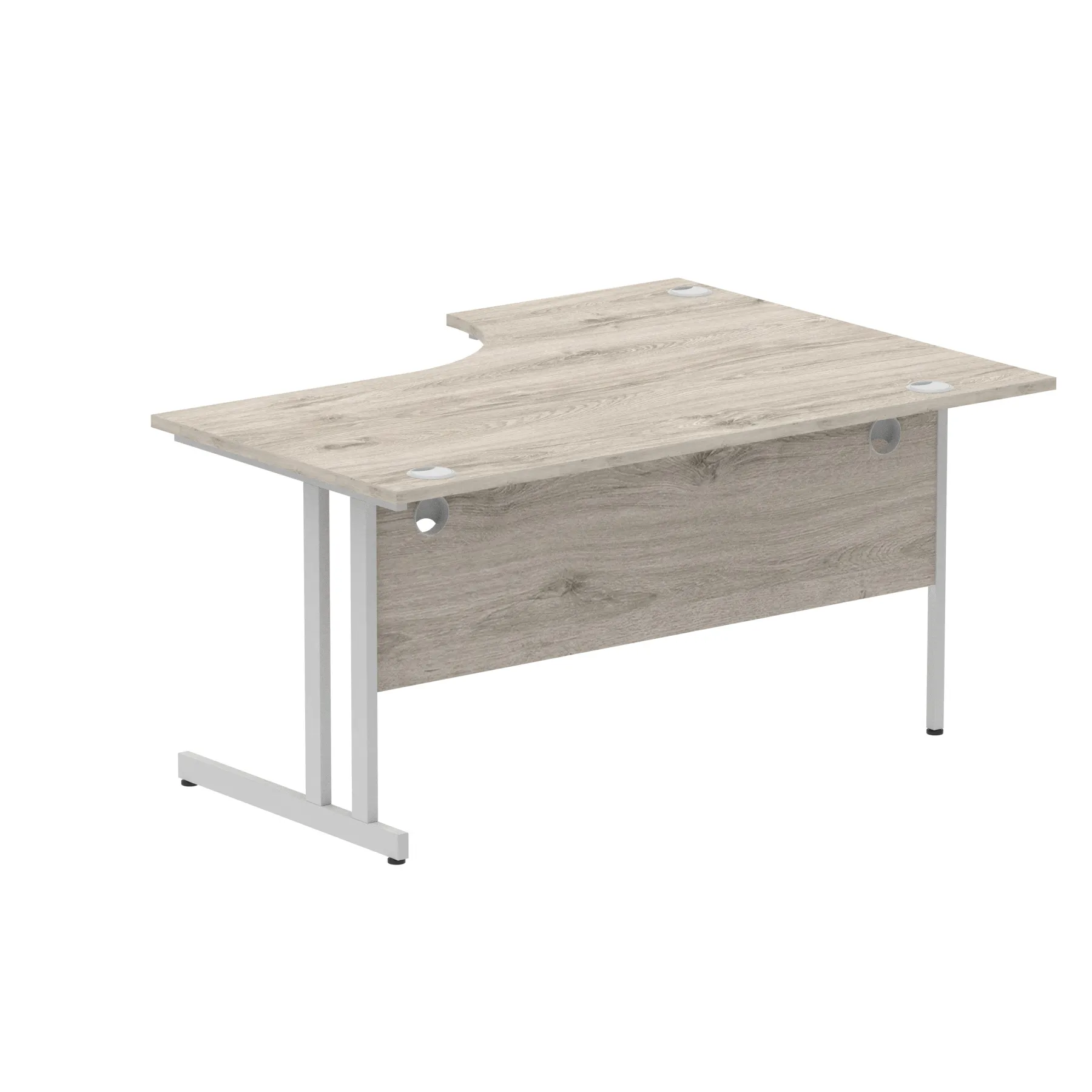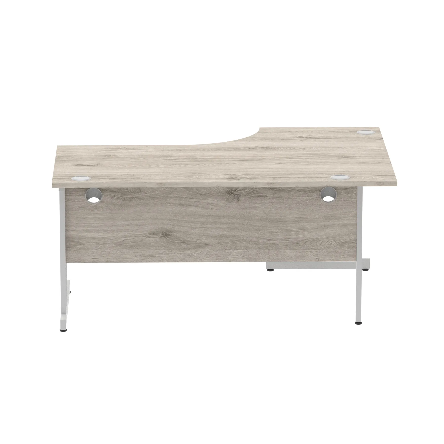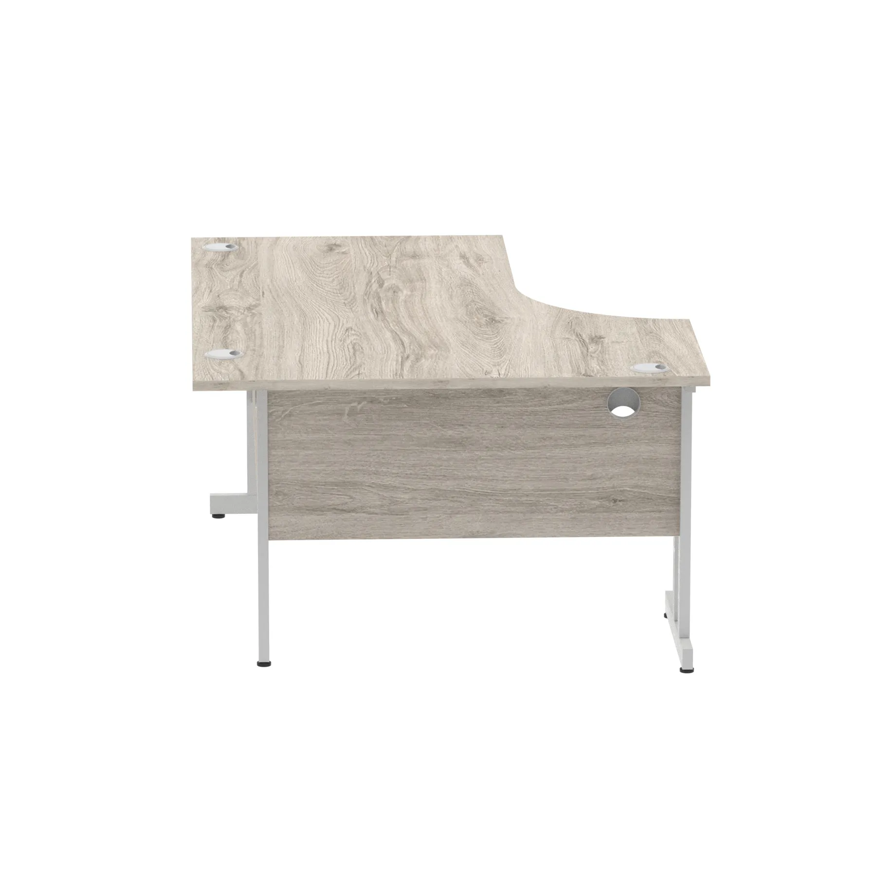 • Impulse contract 1600 wide crescent desk • 25mm tops • Heat resistant melamine finish • 18mm modesty panels • 2mm protective abs edging • Double strut legs • 3 cable ports • Height adjustable feet • Steel to steel fixings • 3 modesty panels slots • 600 deep • Deep set modesty panel (5″) allows for compatibility of most screen clamp fittings • Weight Capacity: 135Kg