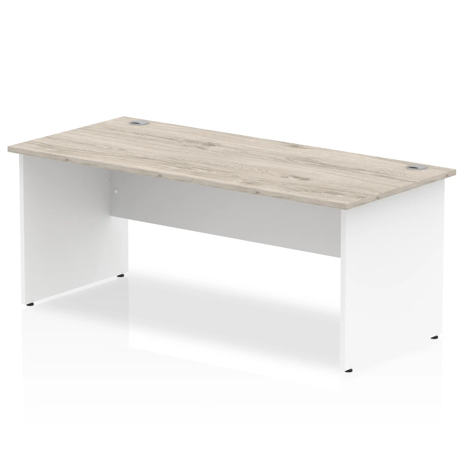 Impulse contract desk | 25mm tops | Heat resistant melamine finish | 18mm modesty panel | 2mm protective abs edging | Matching wood panel end legs | 2 cable ports | Height adjustable feet | Steel to steel fixings | 2 modesty panel slots | Deep set modesty panel (5″) allows for compatibility of most screen clamp fittings | Weight Capacity 135Kg
