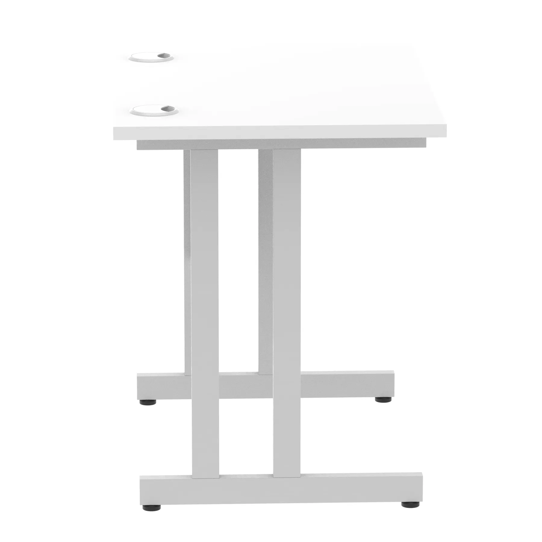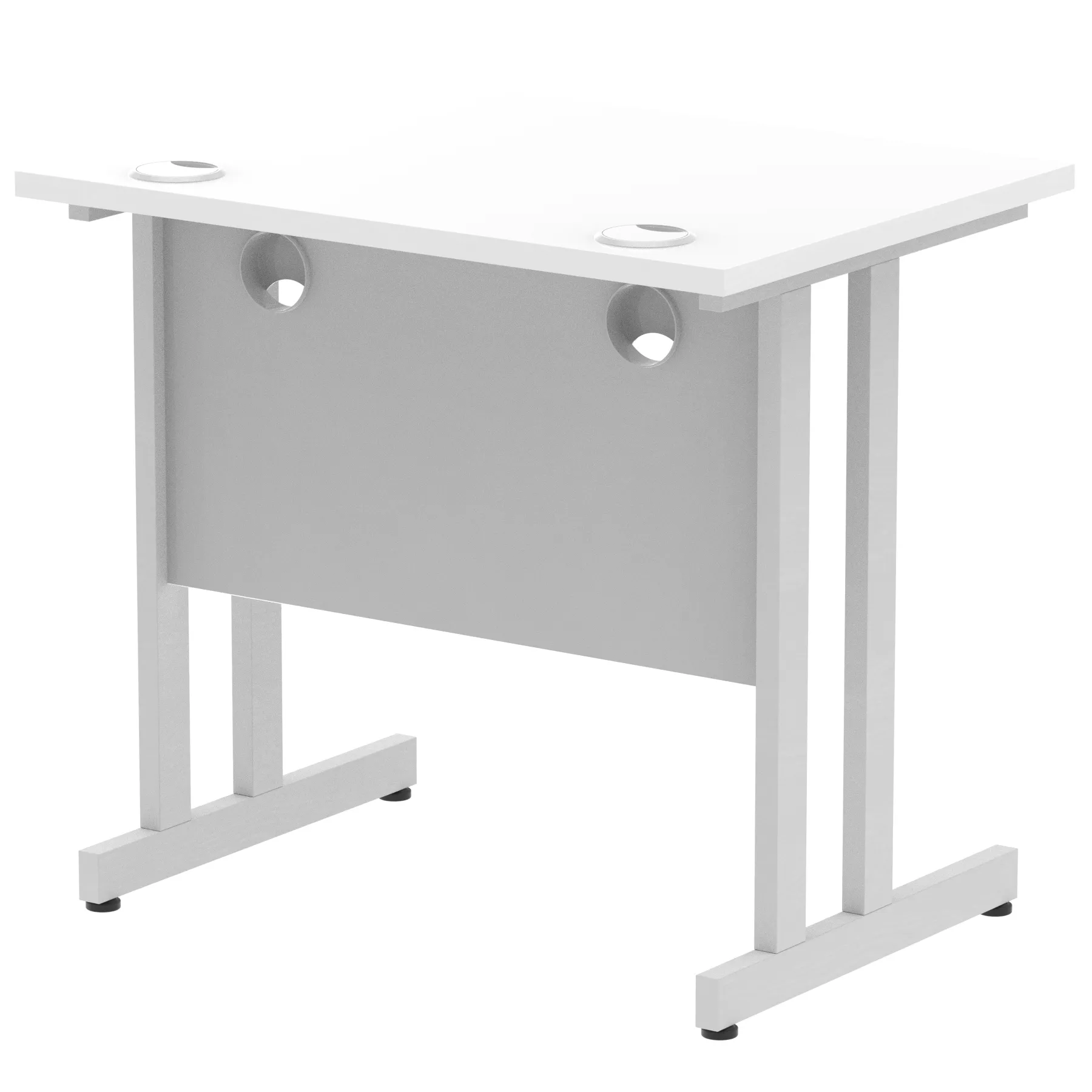 Impulse contract desk | 25mm tops | Heat resistant melamine finish | 18mm modesty panels | 2mm protective abs edging | Silver coated double strut legs | 2 cable ports | Height adjustable feet | Steel to steel fixings | 2 modesty panels slots| Deep set modesty panel (5″) allows for compatibility of most screen clamp fittings | Weight Capacity 135Kg