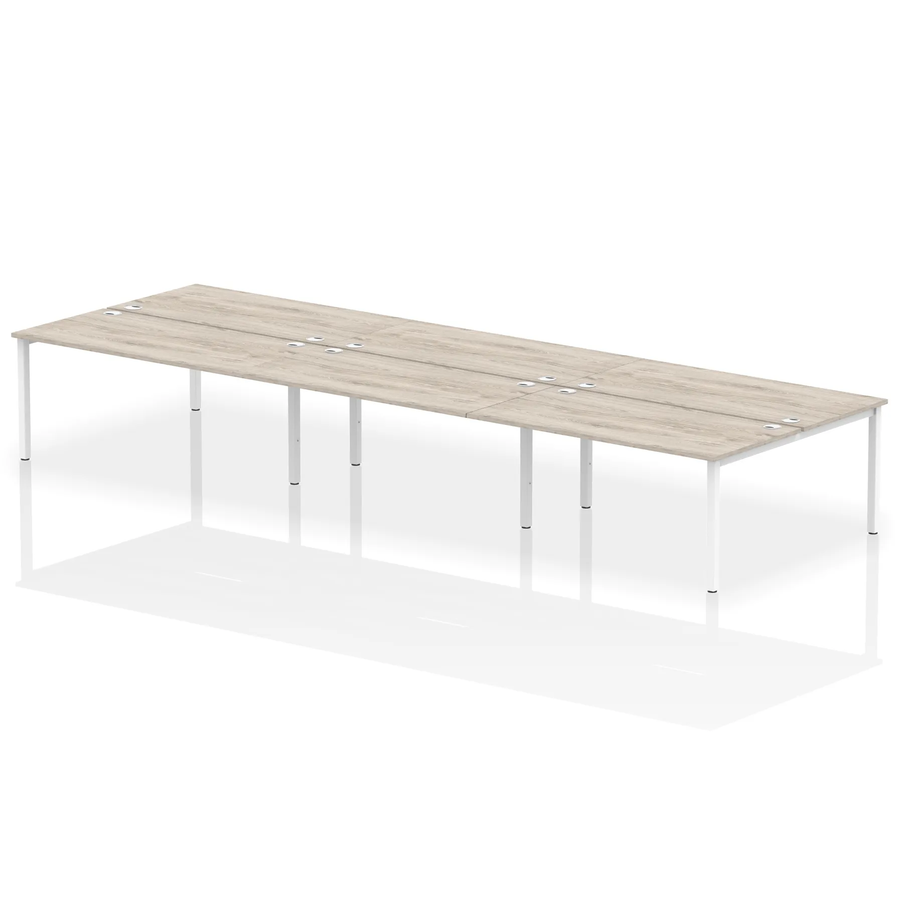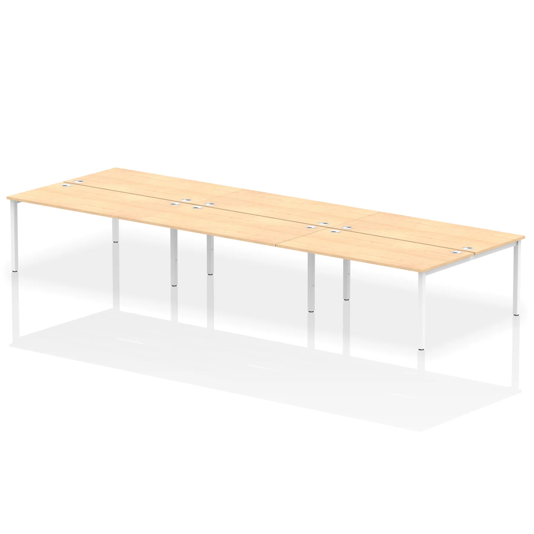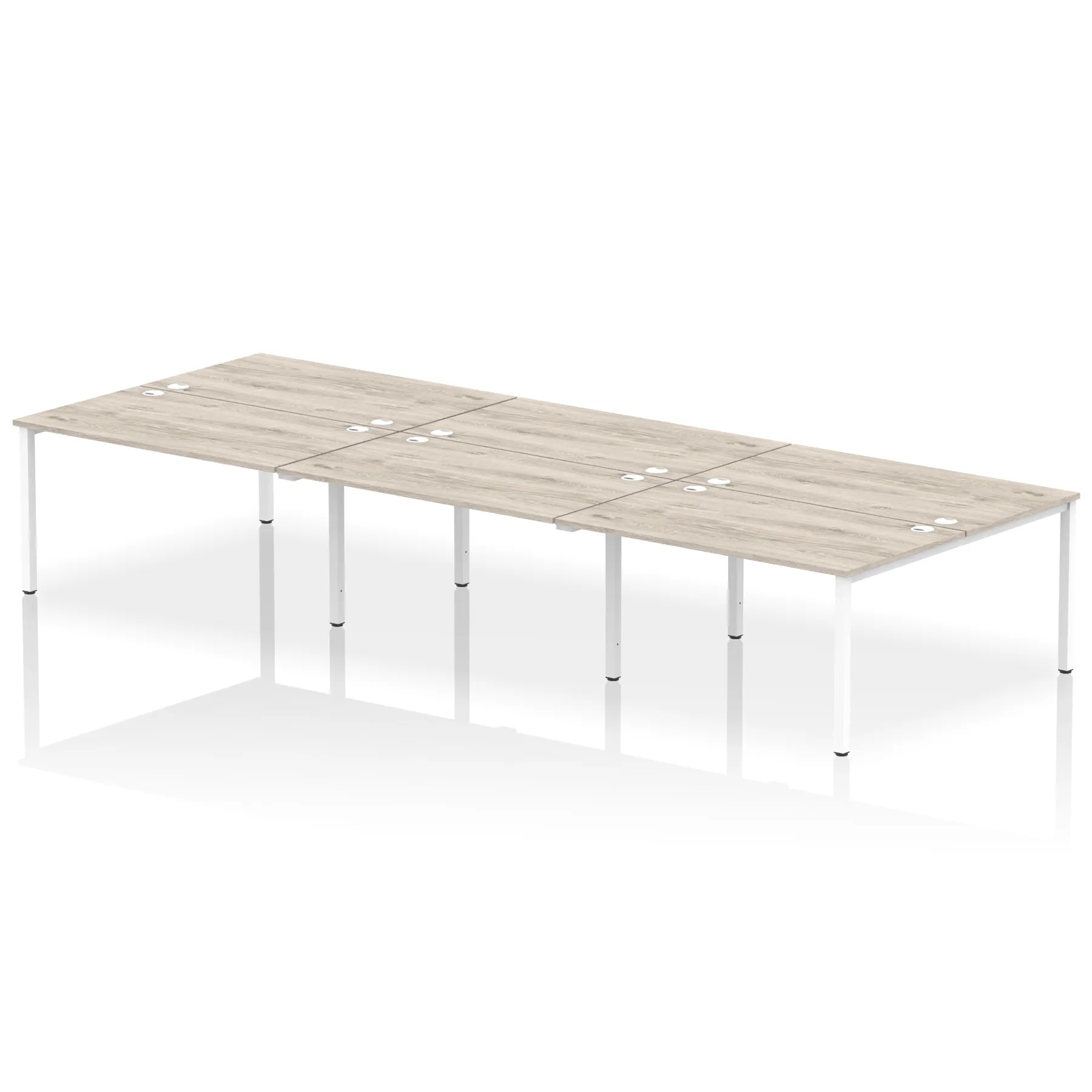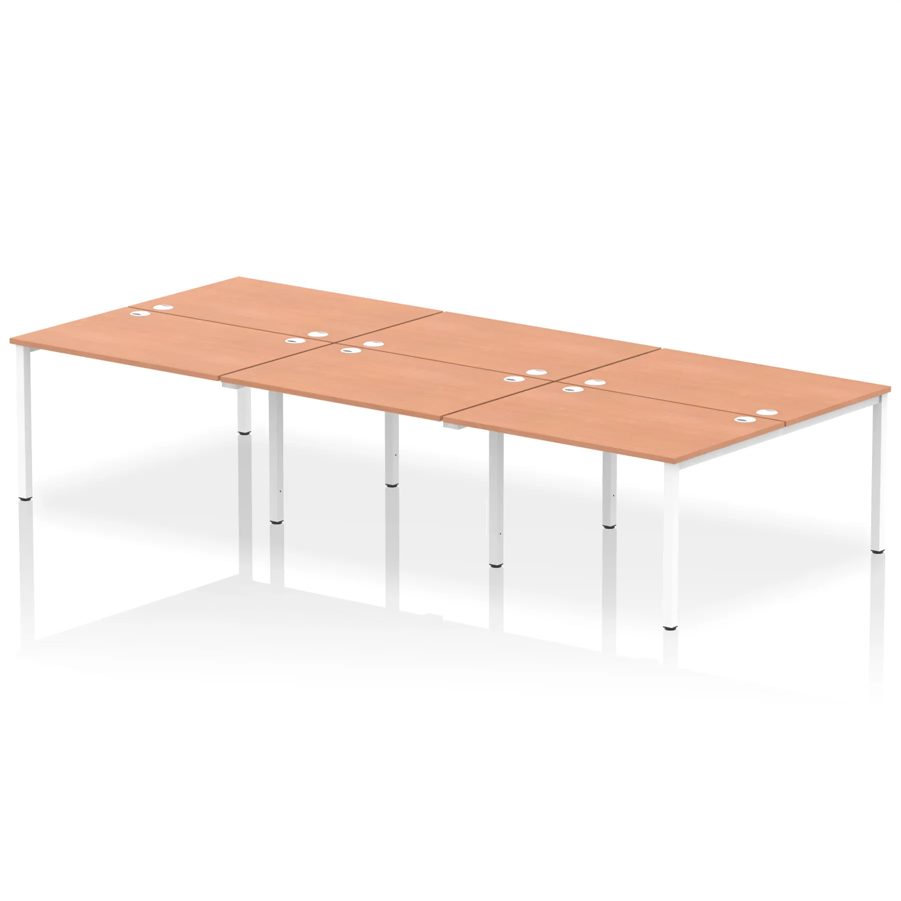 • Conjoinable frame system allows for easy adaptability • Stylish powder coated goal post leg design • Double cable ports for easy cable management • 25mm thick tops with 2mm protective edging • Adjustable Feet • Choice of 7 wood finishes and 3 leg colours • Weight Capacity: 100kg per user