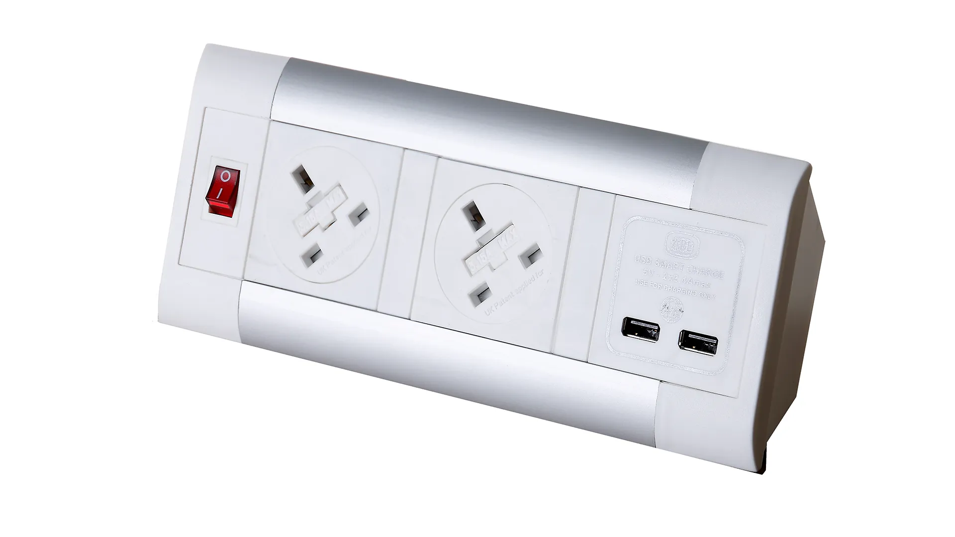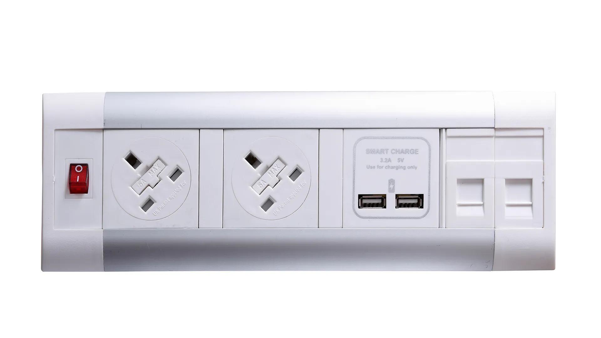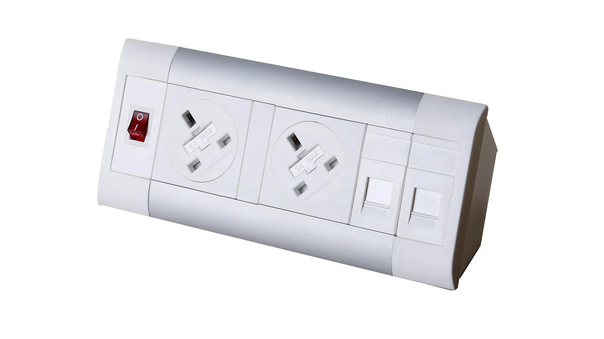 Impulse Desktop Module 2 x 5A UK Sockets, 1 x Neon Switch, 1 x 500mm Lead to 3 Pole Connector in White