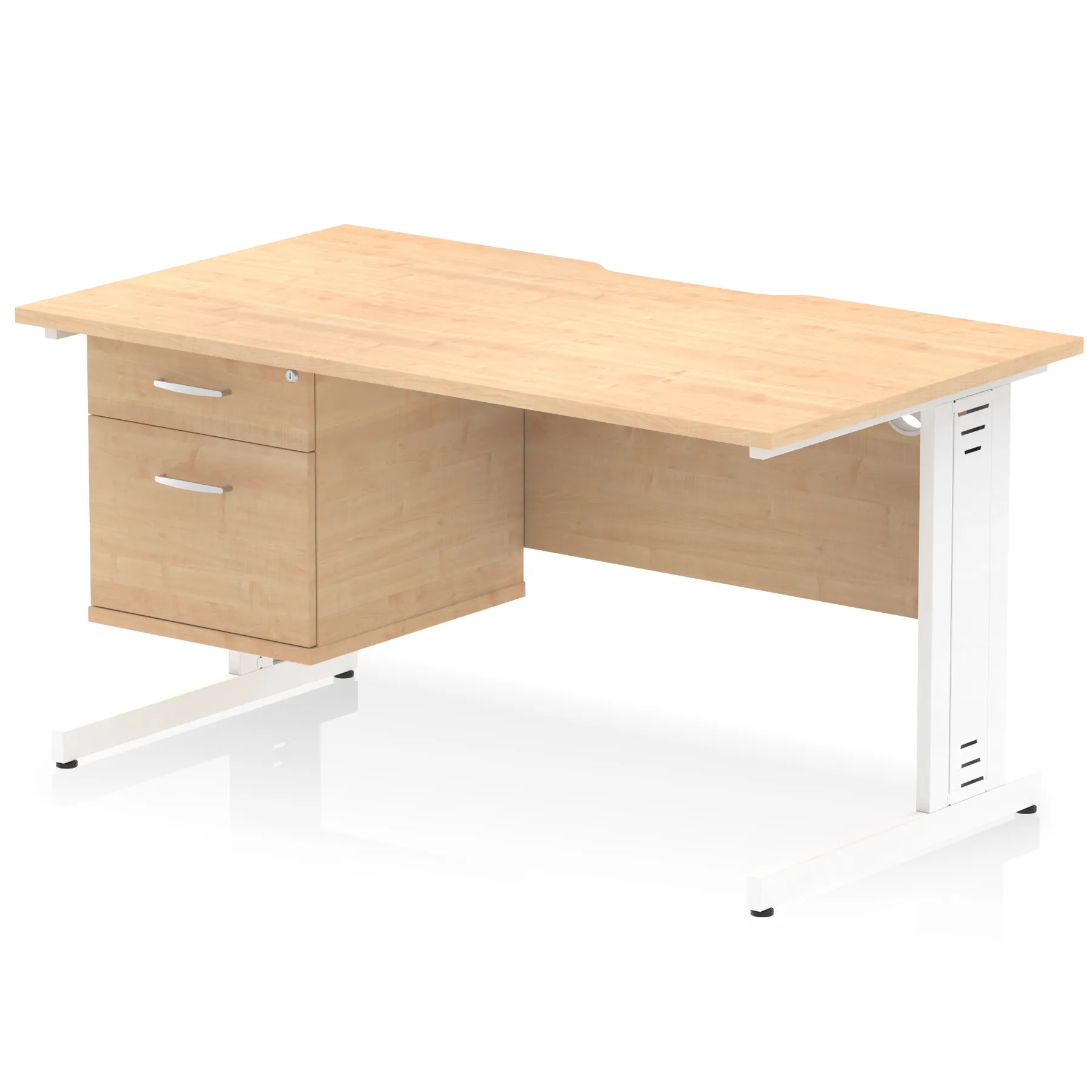 Impulse Scalloped Edge 1400mm Cable Managed Straight Desk With Single Fixed Pedestal