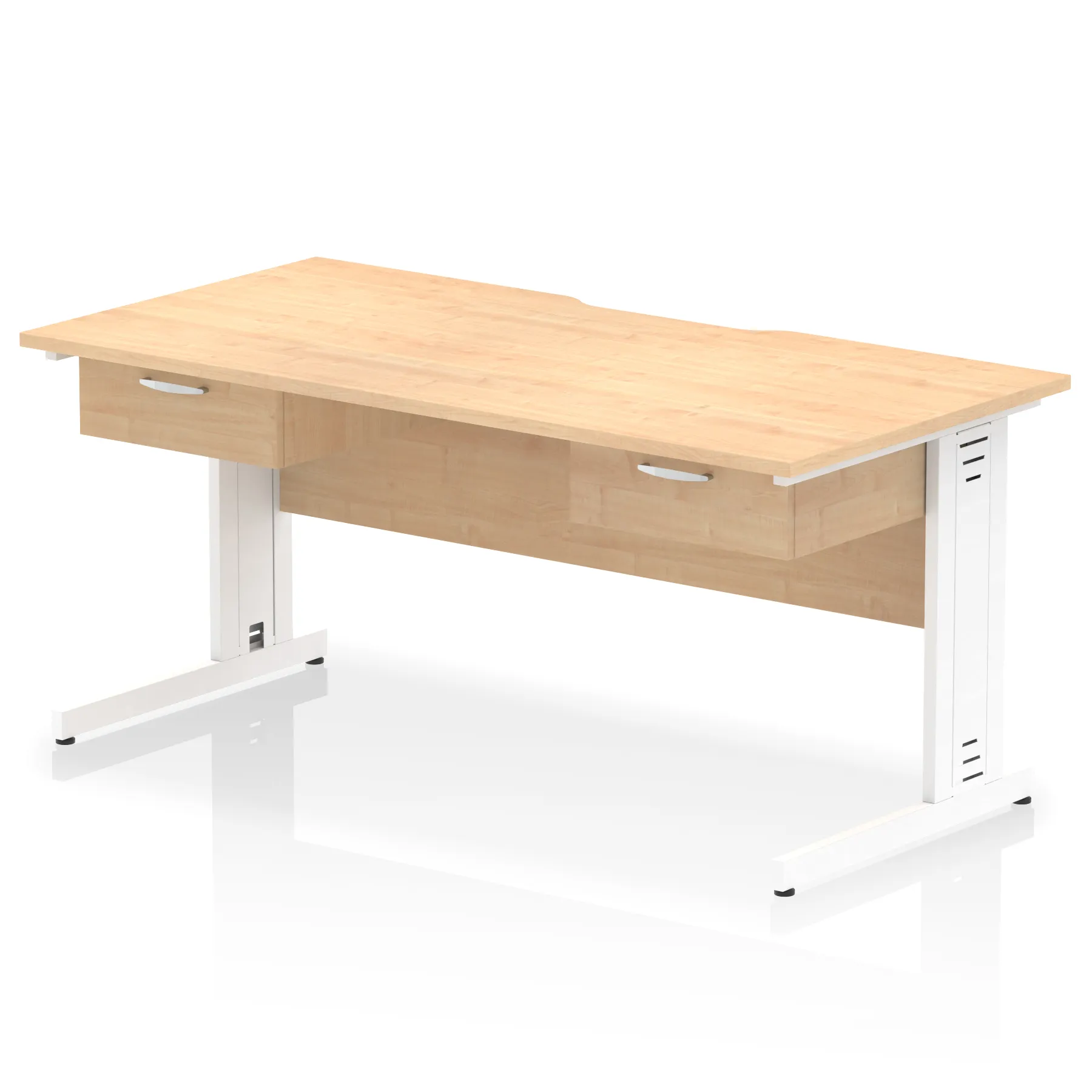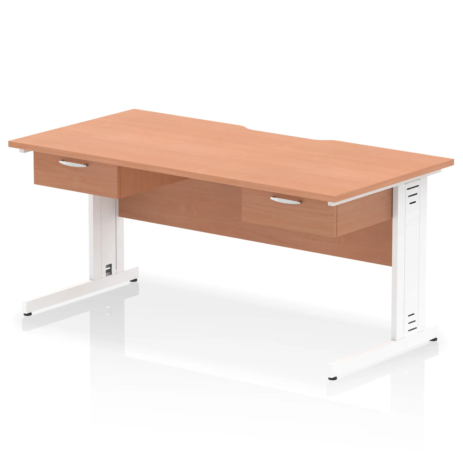Impulse Scalloped Edge Cable Managed Straight Desk With Two One Drawer Fixed Pedestals