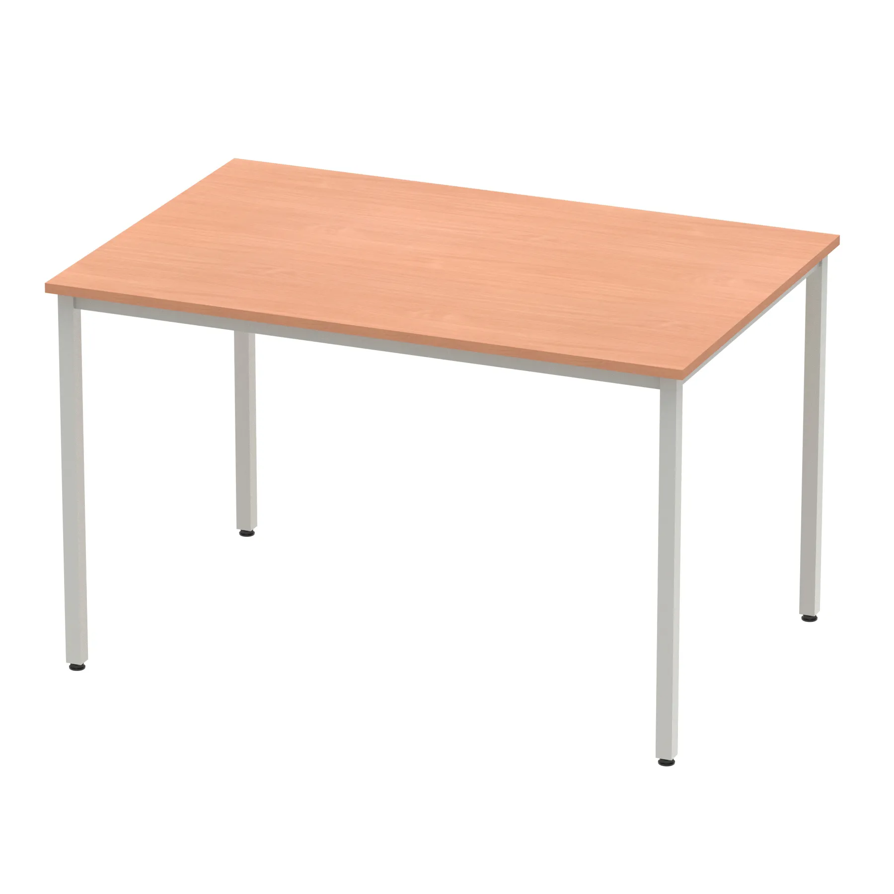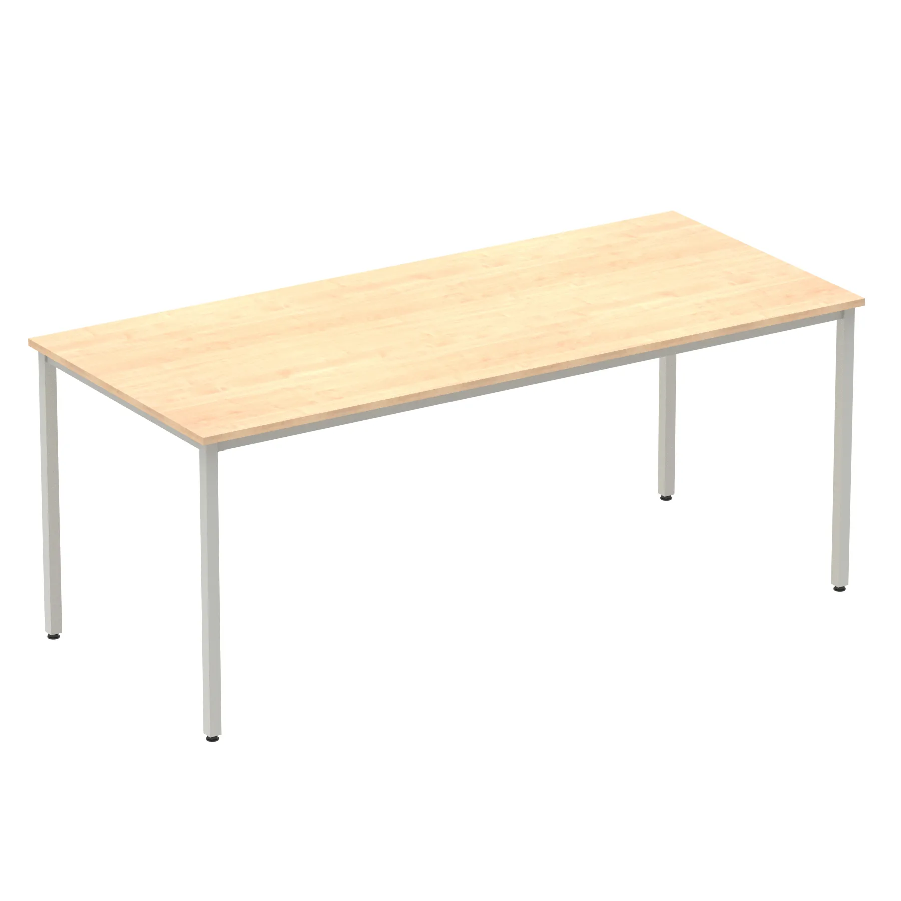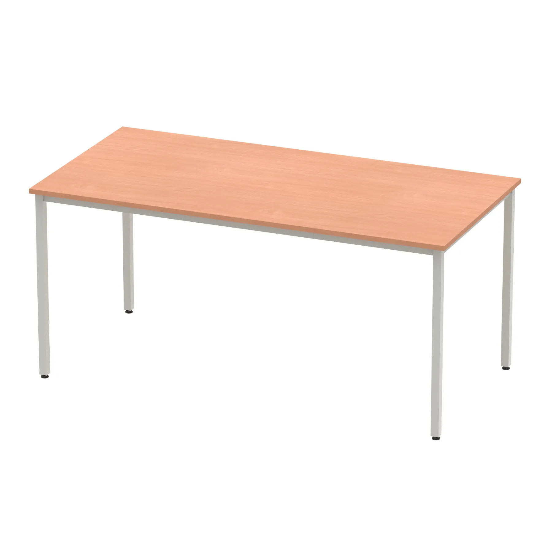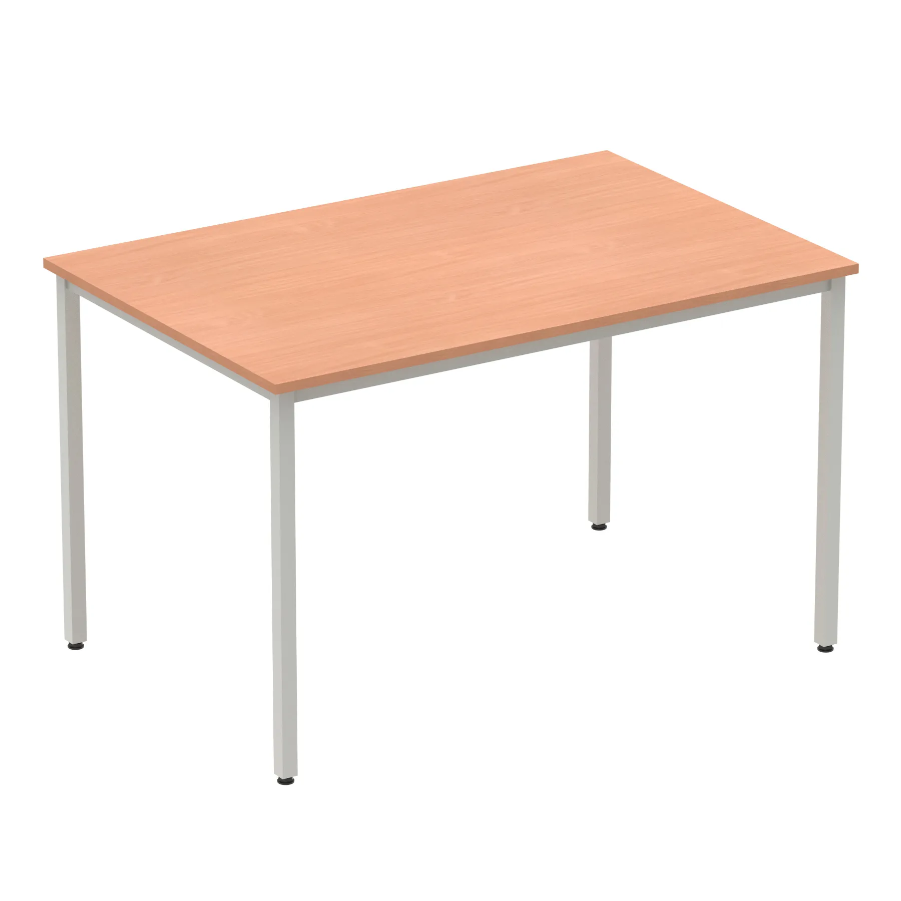 Impulse freestanding meeting table • Classic rectangular shape • Provides excellent team working environment • 18mm thick top • Attractive silver coated box frame leg • 2mm abs protective edging • Heat resistant beech melamine finish • Weight Capacity: 100Kg