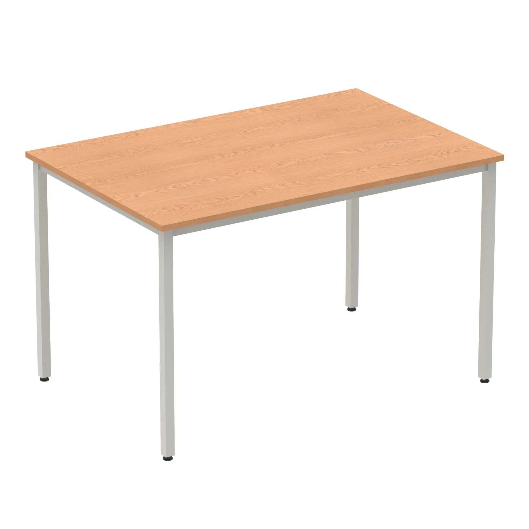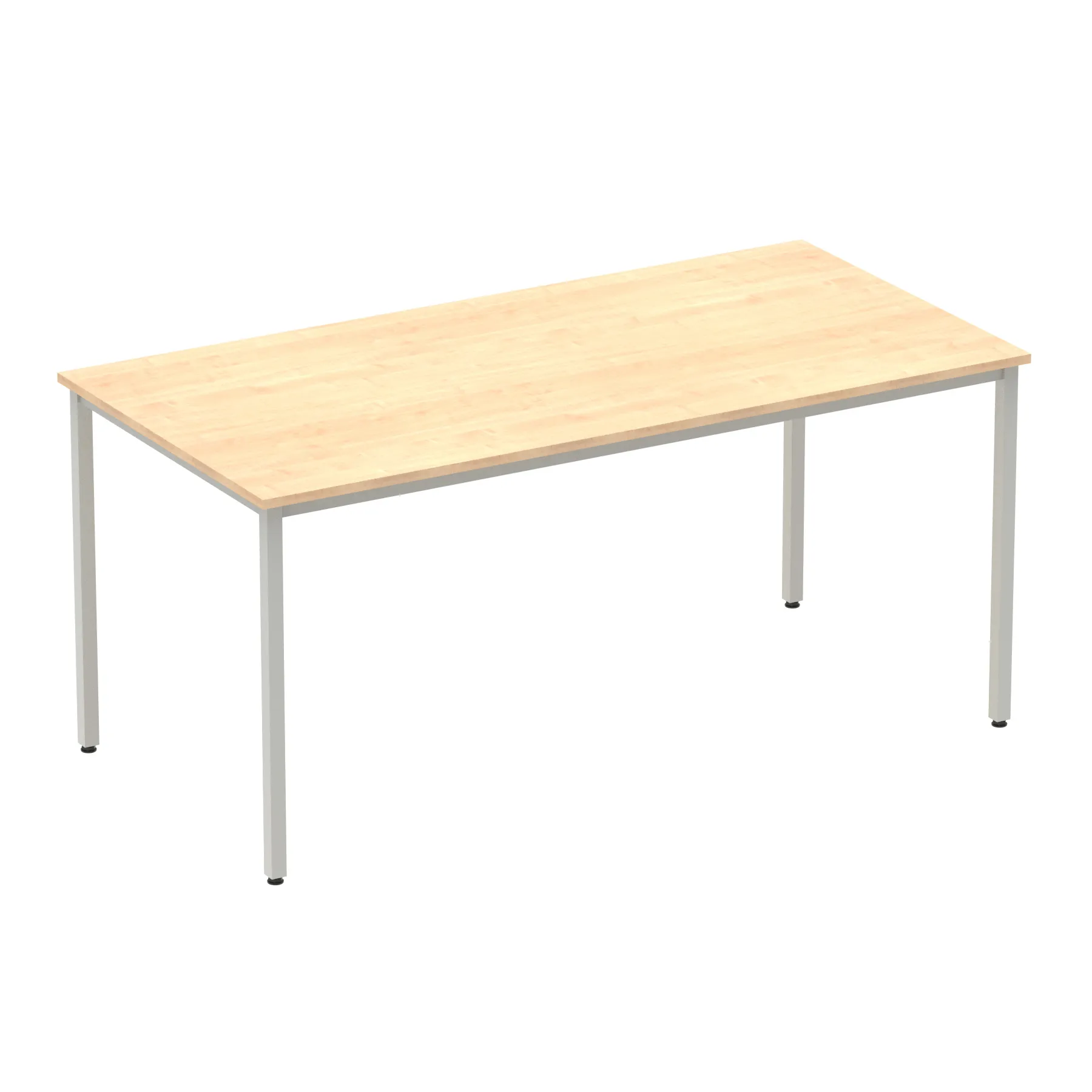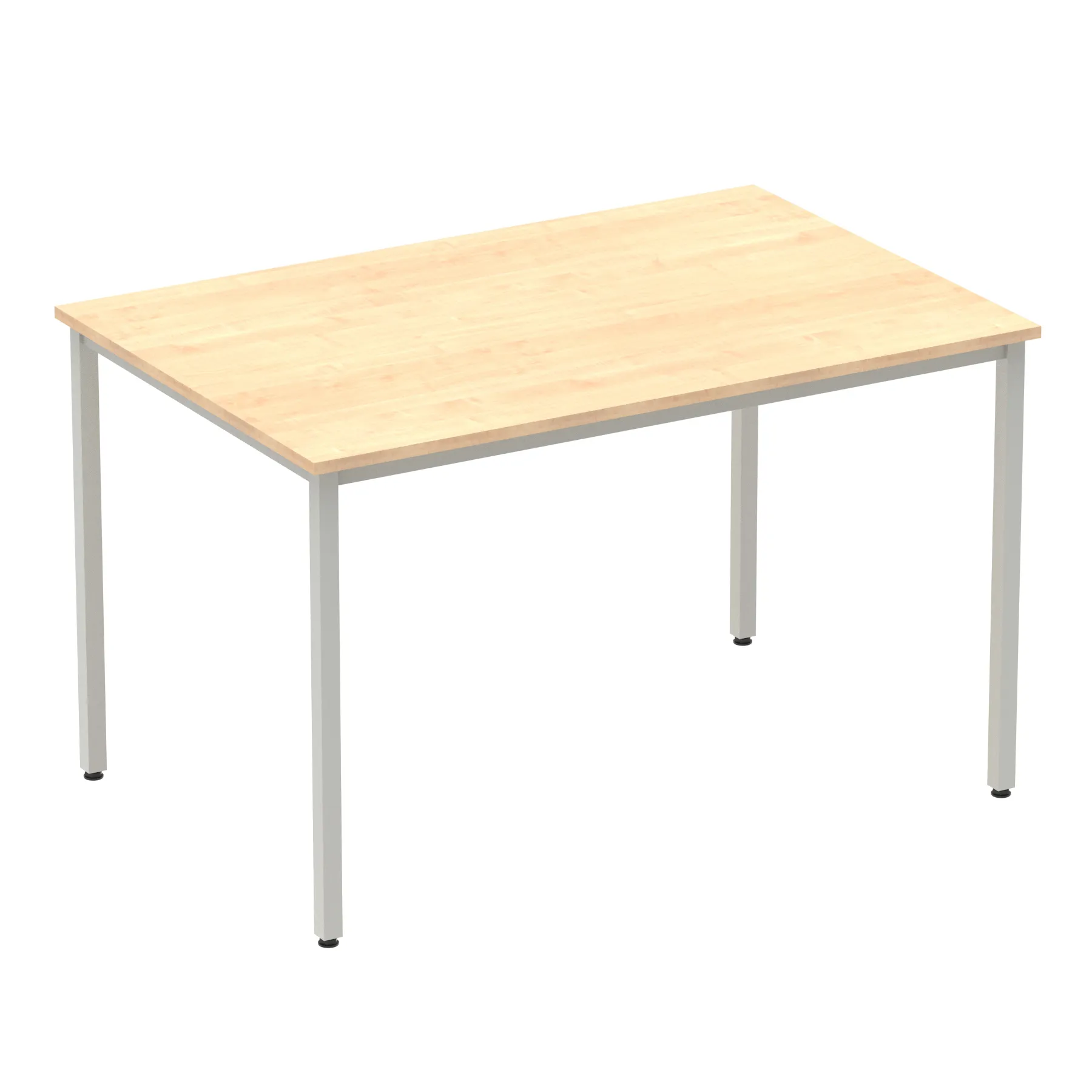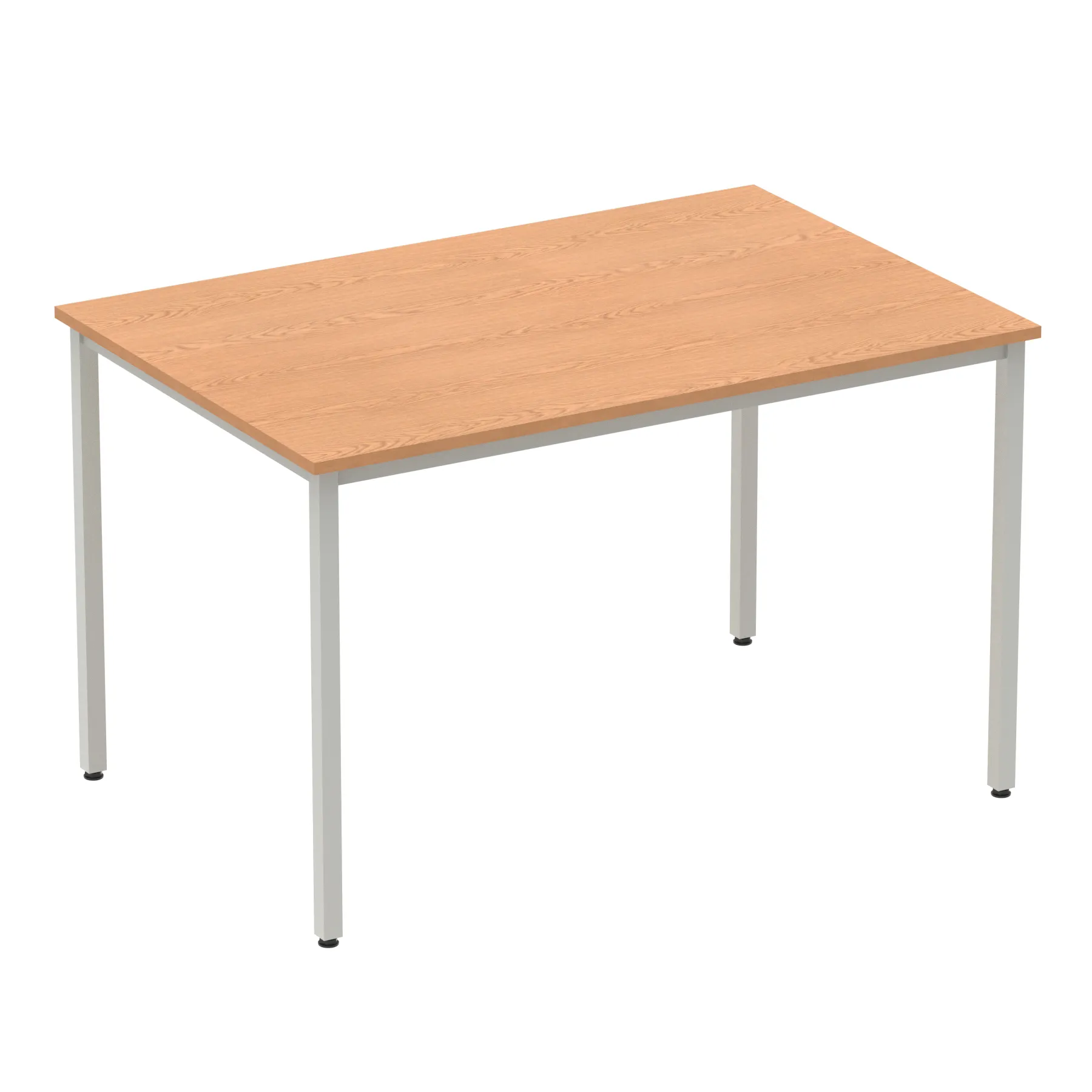 Impulse freestanding meeting table • Classic rectangular shape • Provides excellent team working environment • 18mm thick top • Attractive silver coated box frame leg • 2mm abs protective edging • Heat resistant beech melamine finish • Weight Capacity: 100Kg