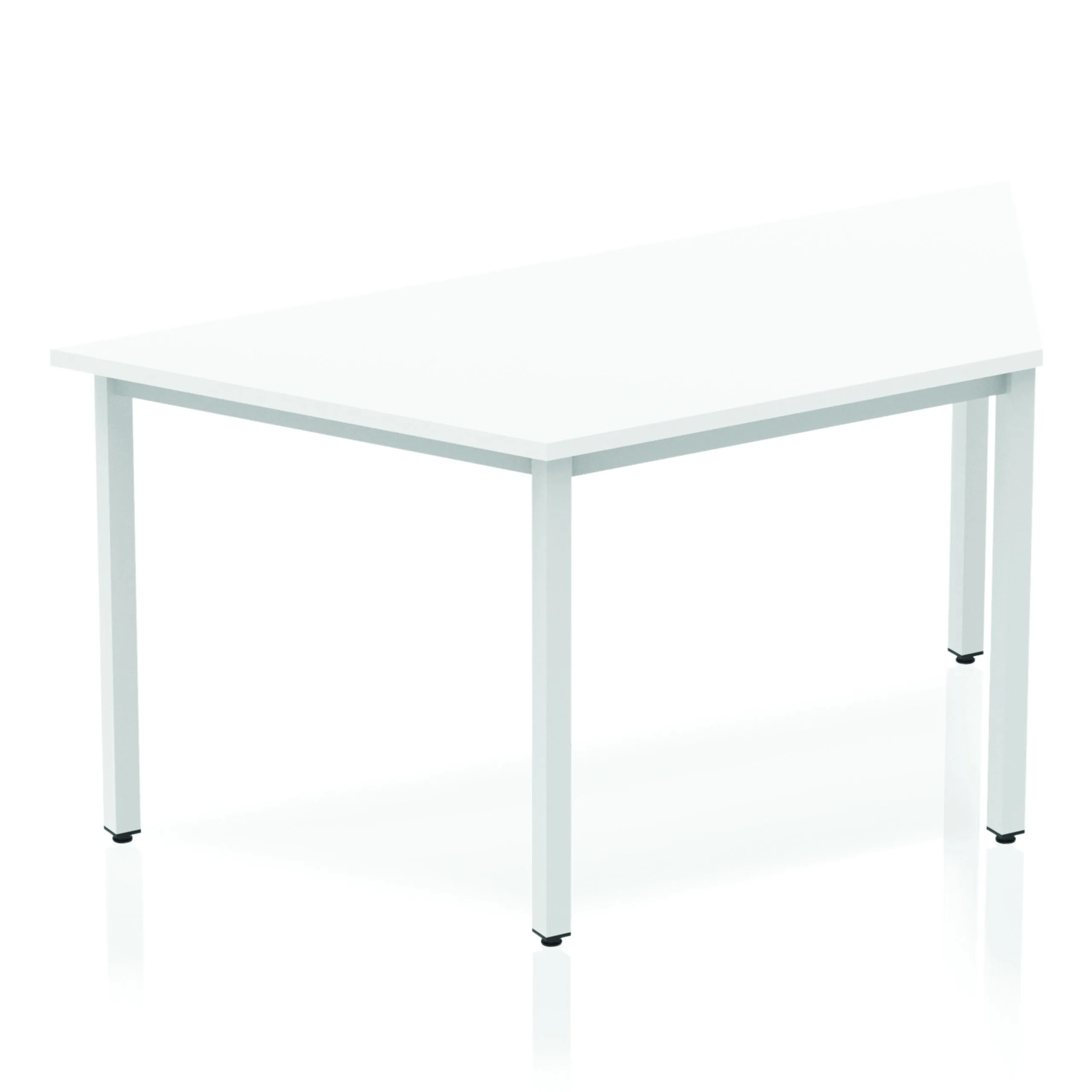 Impulse freestanding meeting table • Trapezoidal shape for groups of tables • Provides excellent team working environment • Slanted sides measure 800mm from corner to corner • 18mm thick top • Attractive silver coated box frame leg • 2mm abs protective edging • Heat resistant beech melamine finish • Weight Capacity: 100Kg