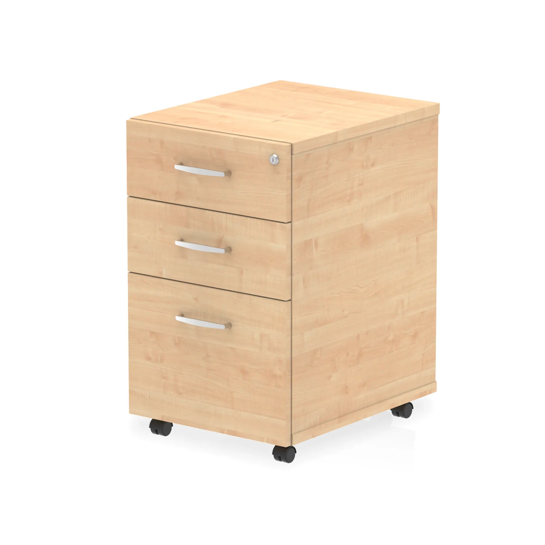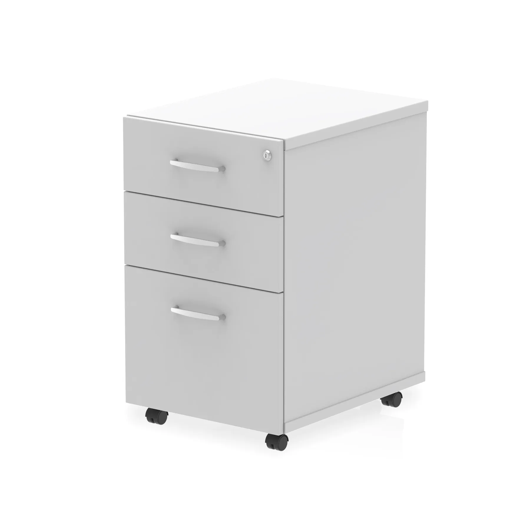 Impulse under desk pedestal | 25mm top | Full 18mm back board | 2mm abs protective edges | Steel handles | Solid box drawer construction | Fits A4 or foolscap filing | Smooth running castors for mobility | Steel to steel fixings | Lockable drawers | Heat resistant melamine finish