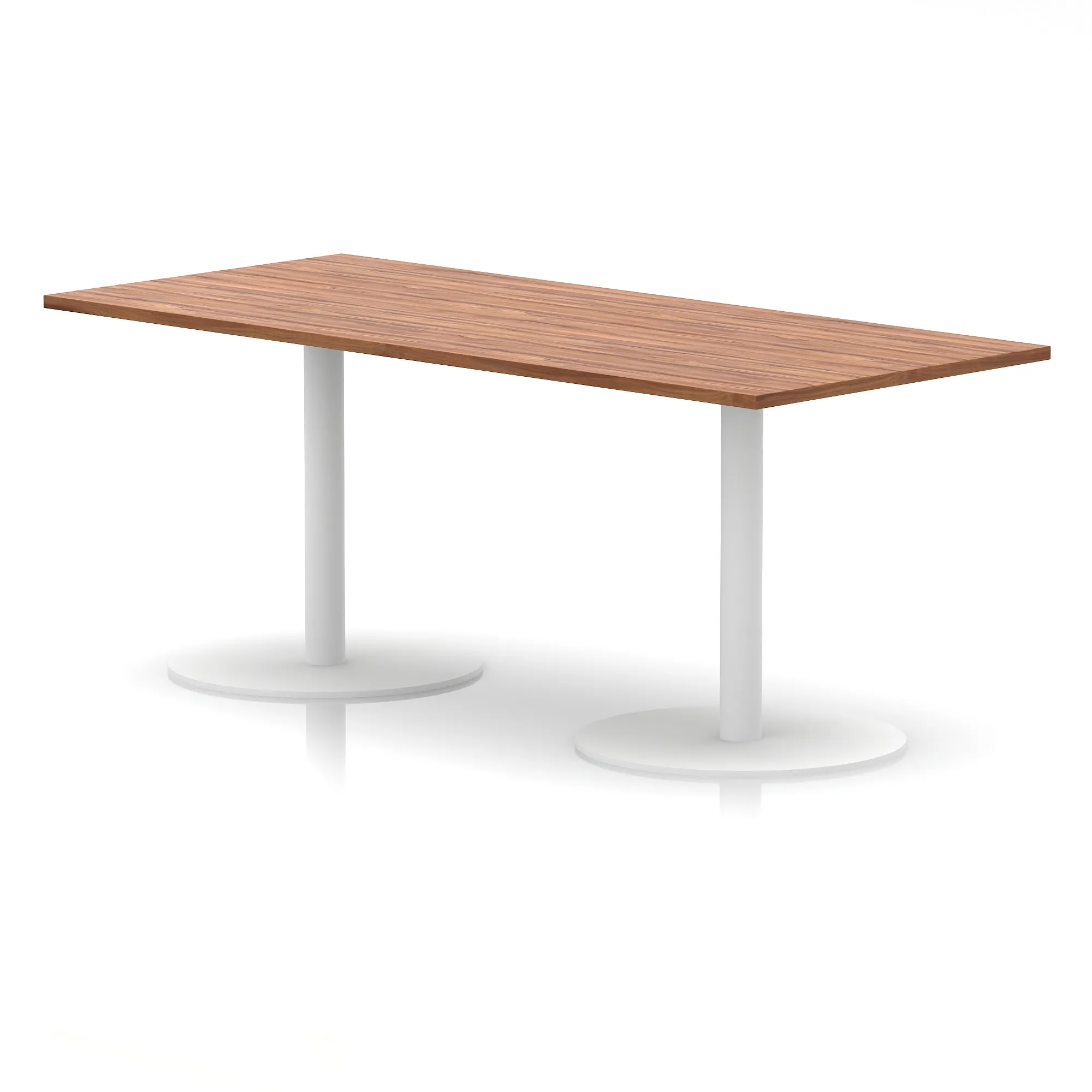 Italia is the ultimate style statement – whether for meetings, conferences, boardrooms or dining areas. This table is topped by the clean lines of a heatproof, clean looking melamine worktop that requires minimum maintenance. Underneath the brushed steel trumpet base and post design looks striking and has the practicality of eliminating any knee and leg traps underneath.
