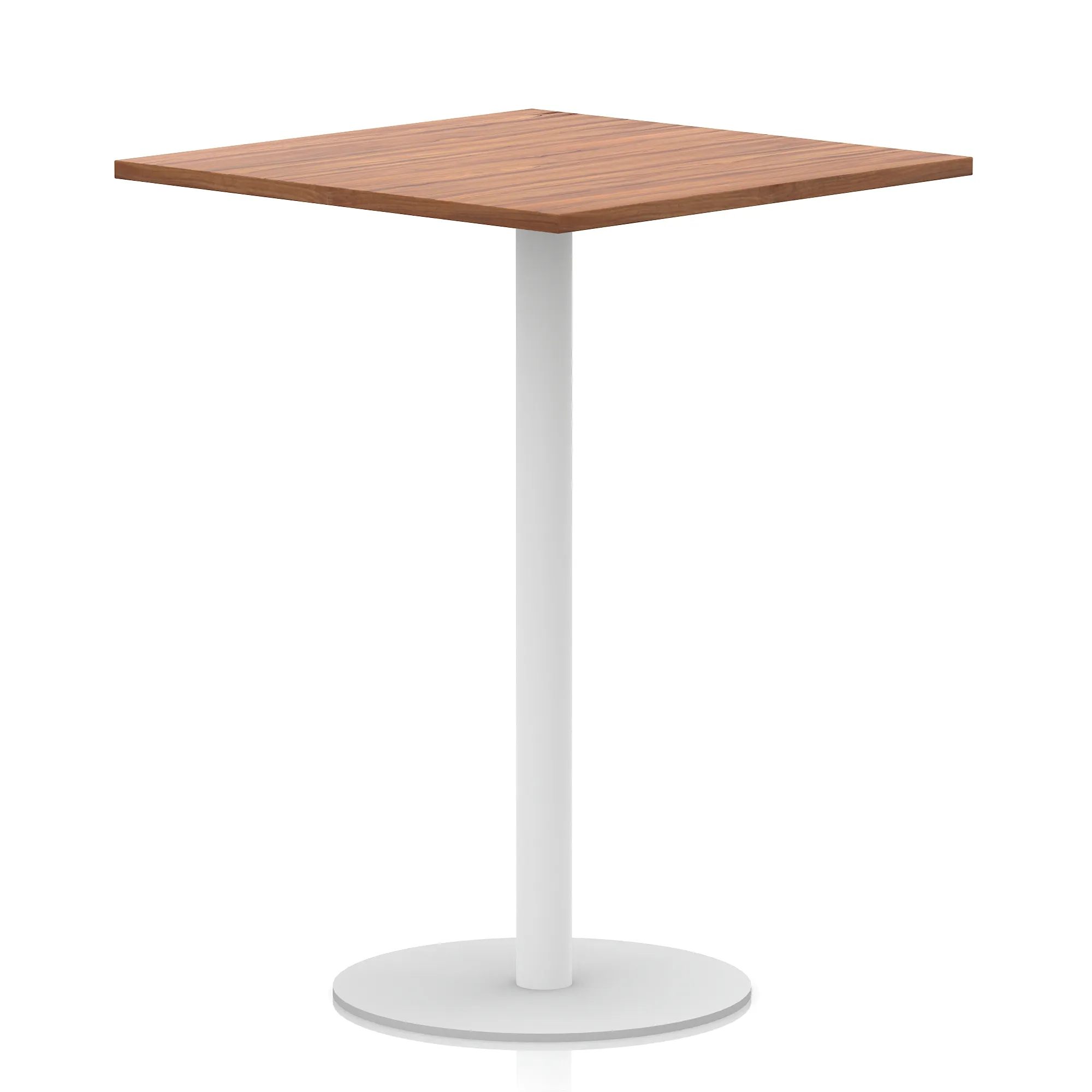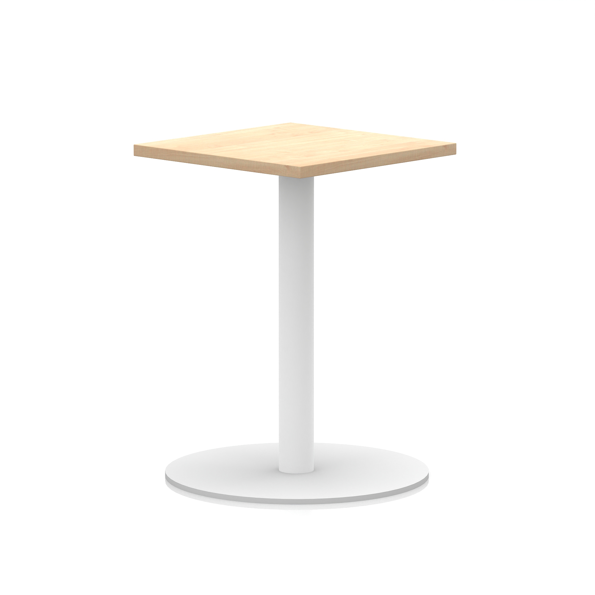 25mm thick desk top profile | Brushed stainless steel effect circular base (580mm diameter) | Brushed stainless steel pillars (76mm diameter) | Weighted base provides stability | Two part bolted frame system
