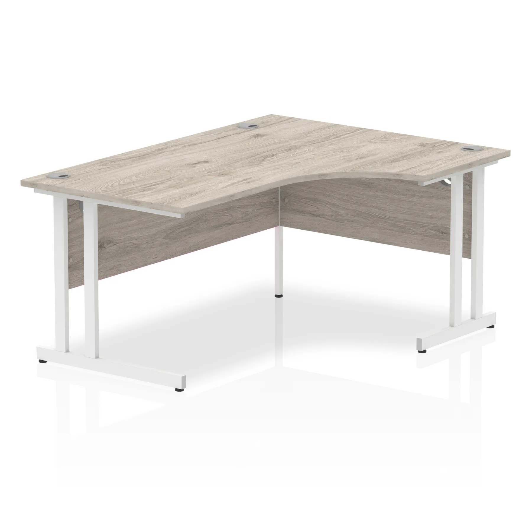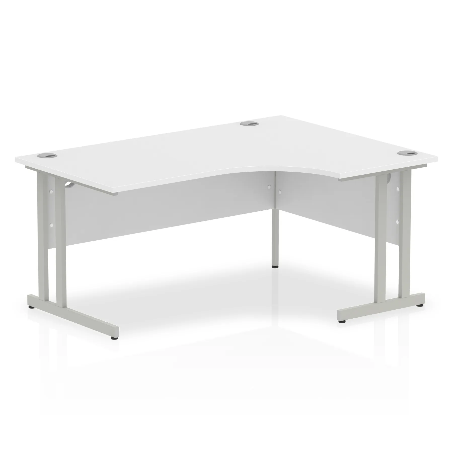 Impulse contract 1600 wide crescent desk | 25mm tops | Heat resistant beech melamine finish | 18mm modesty panels | 2mm protective abs edging | Silver coated double strut legs | 3 cable ports | Height adjustable feet | Steel to steel fixings | 3 modesty panels slots | 600 deep | Deep set modesty panel (5″) allows for compatibility of most screen clamp fittings | Weight Capacity 135Kg