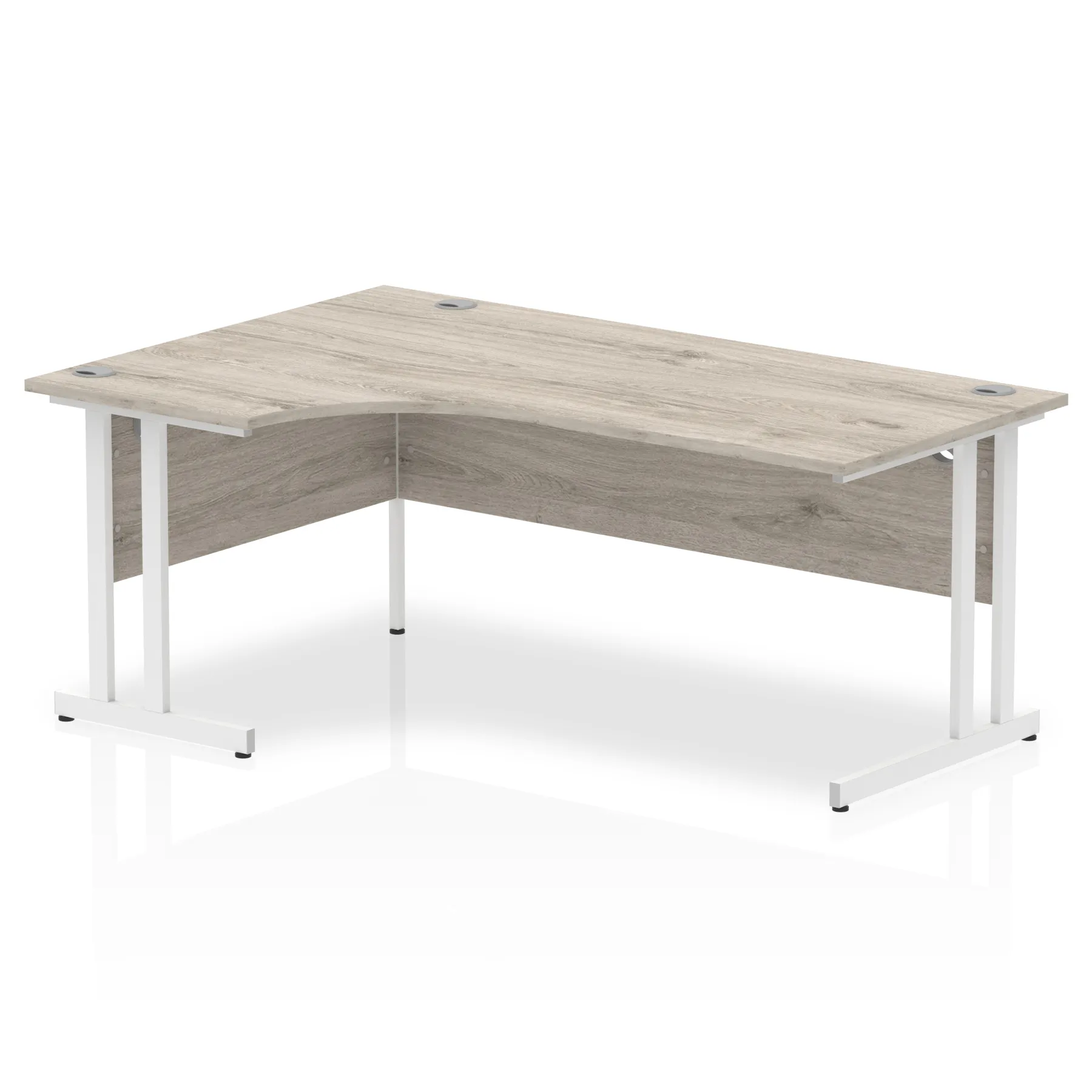 Impulse contract 1400 wide crescent desk | 25mm tops | Heat resistant beech melamine finish | 18mm modesty panels | 2mm protective abs edging | Silver coated double strut legs | 3 cable ports | Height adjustable feet | Steel to steel fixings | 3 modesty panels slots | 600 deep | Deep set modesty panel (5″) allows for compatibility of most screen clamp fittings | Weight Capacity 135Kg