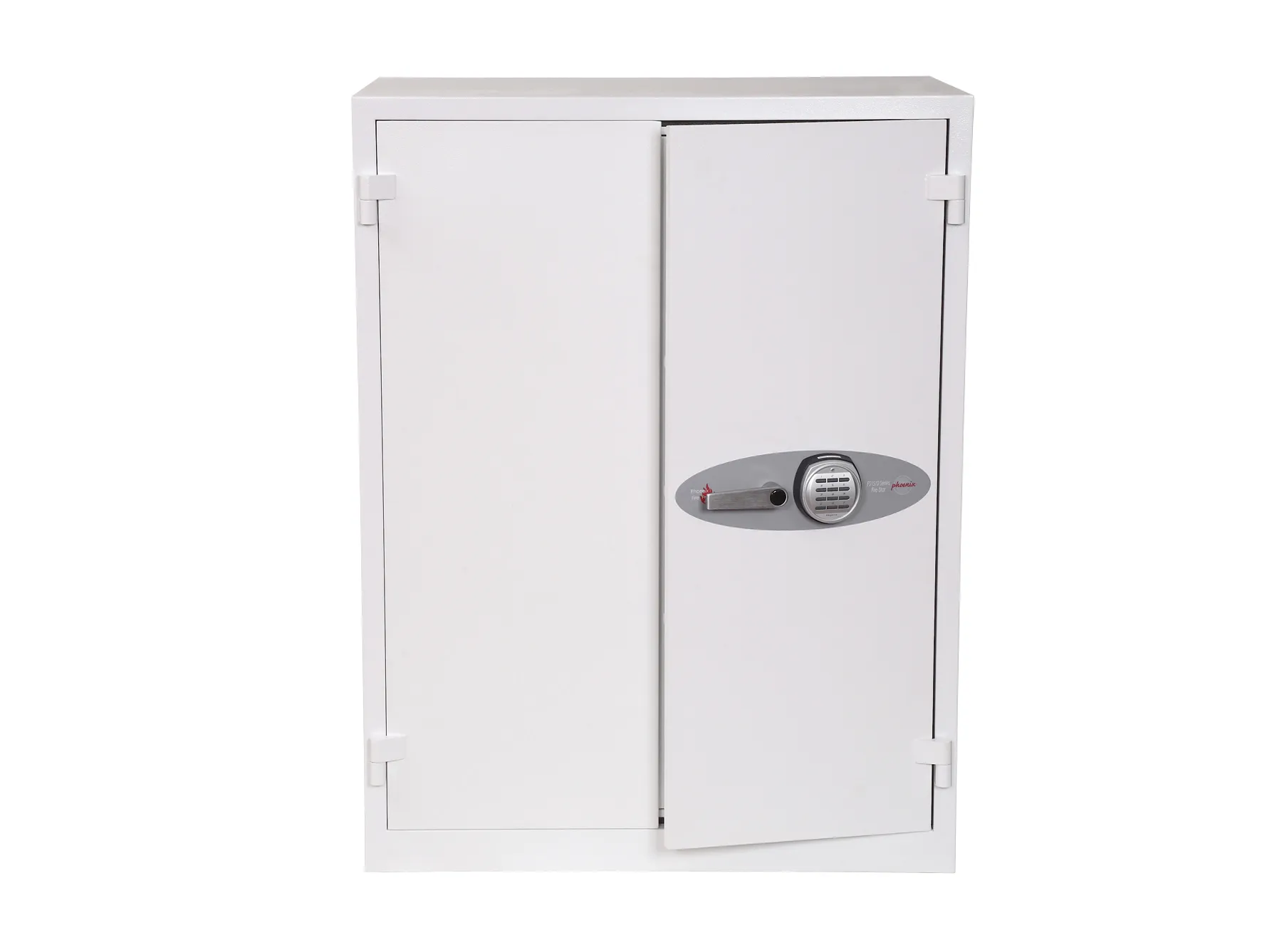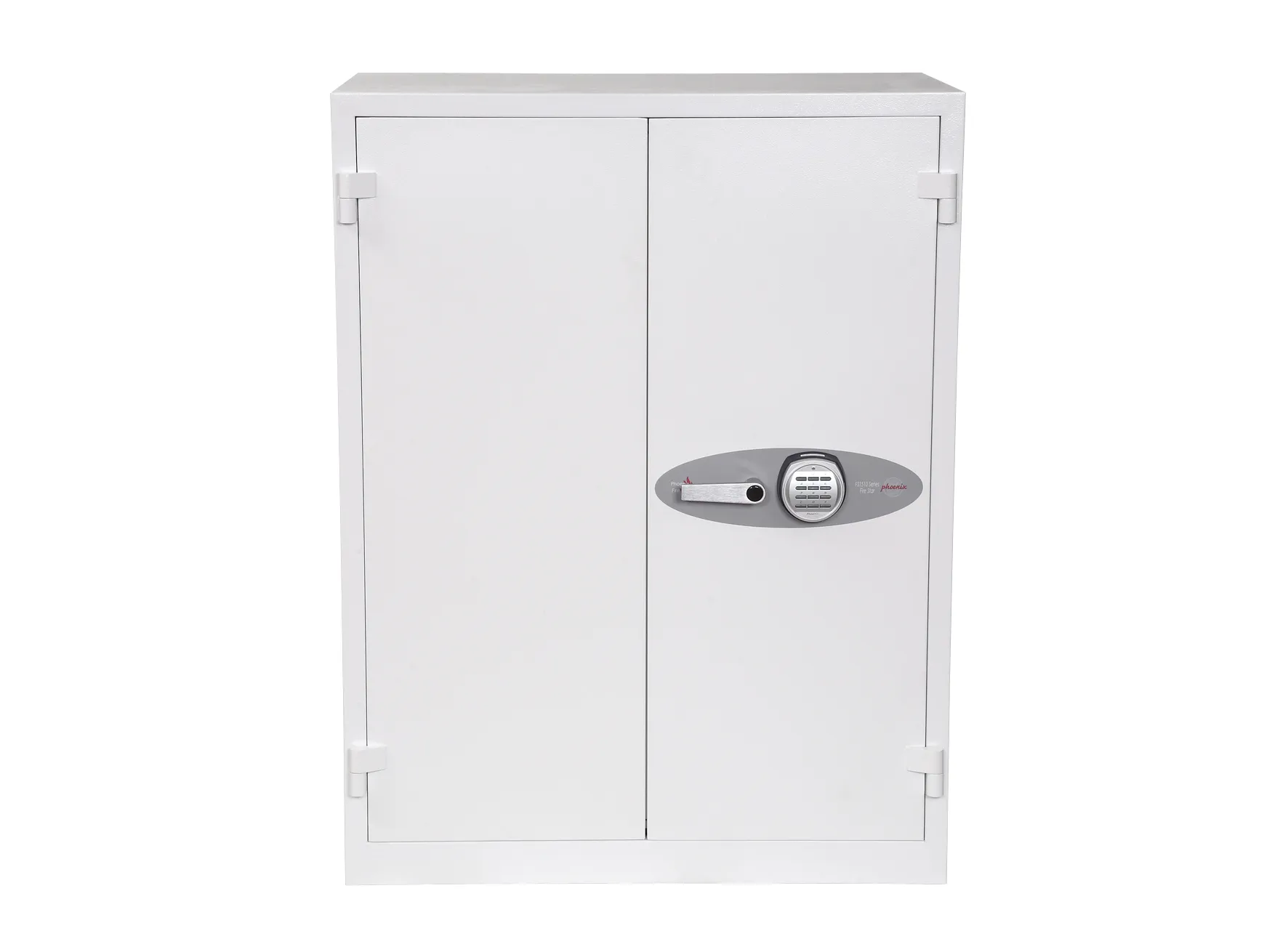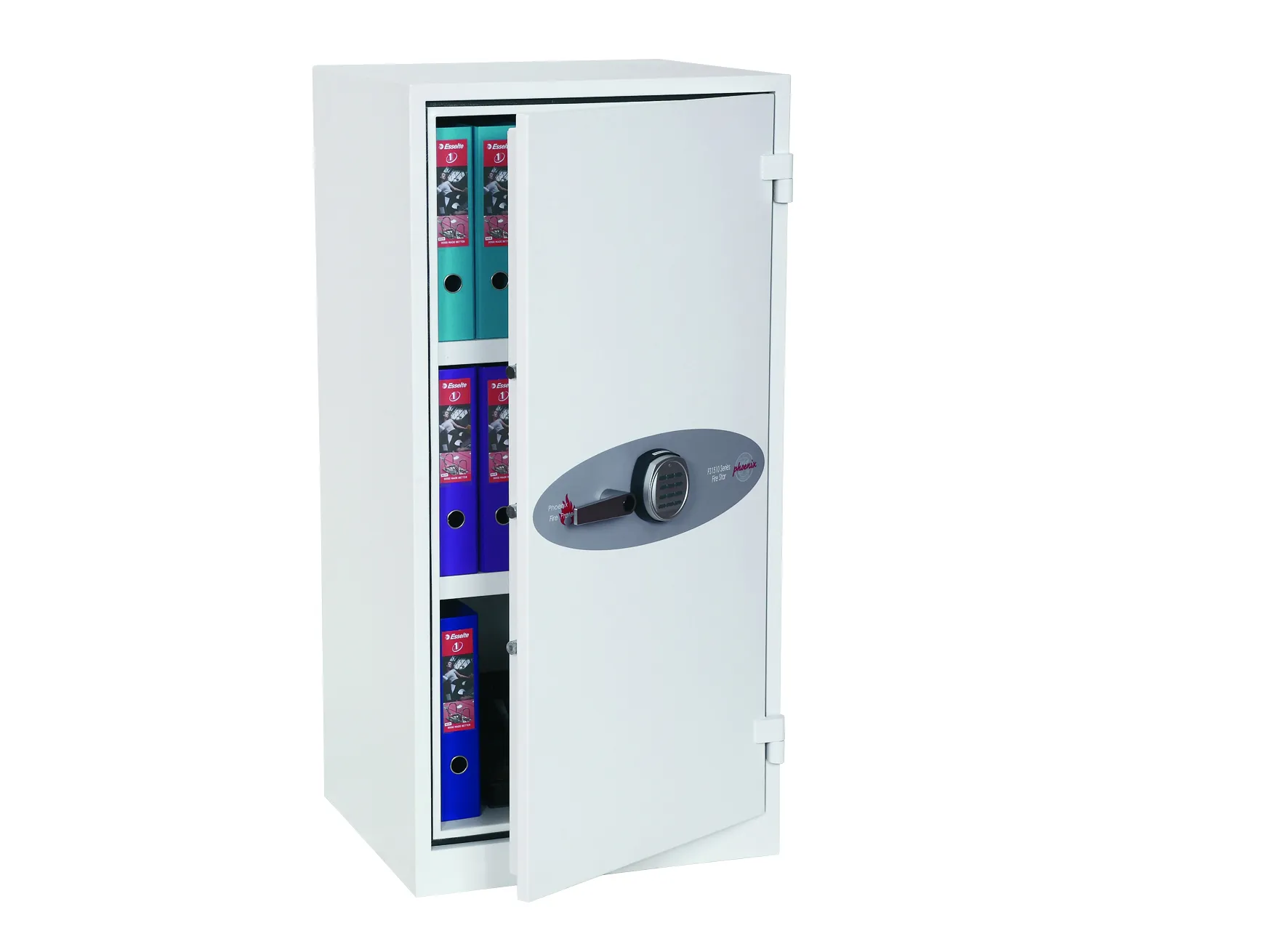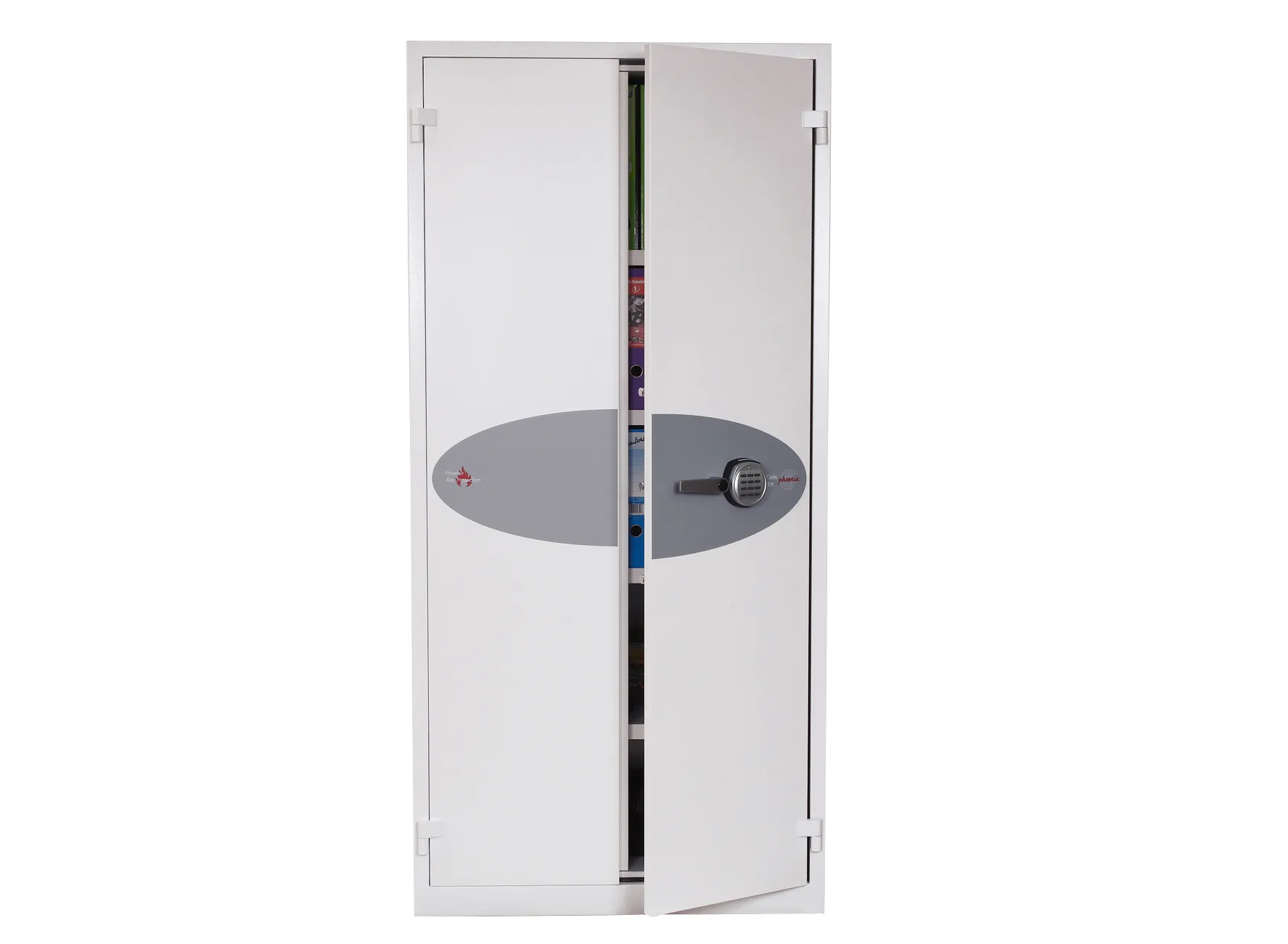 FIRE PROTECTION – Provides 30 minutes fire protection for paper records at 500 °C | SECURITY PROTECTION – The safe is recommended for overnight cash cover of £1,500 or valuables cover of £15,000 | CONSTRUCTION – High security 3 way espagnolette boltwork provides great strength and attack resistance | SPECIAL FEATURES – Supplied with 2 height adjustable shelves that also includes hanging rails for lateral files as standard | COLOUR – Finished in a high quality scratch resistant White paint RAL9003