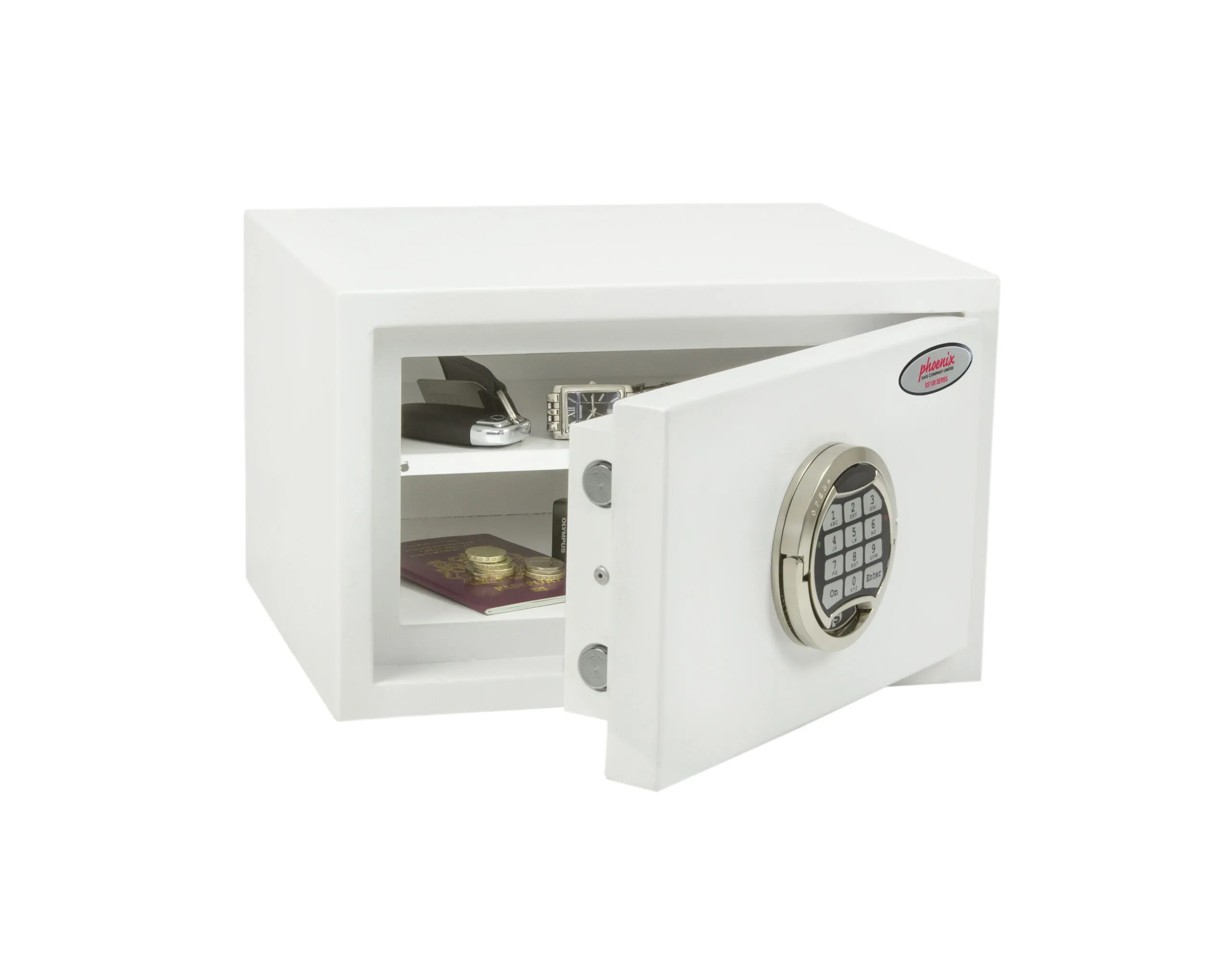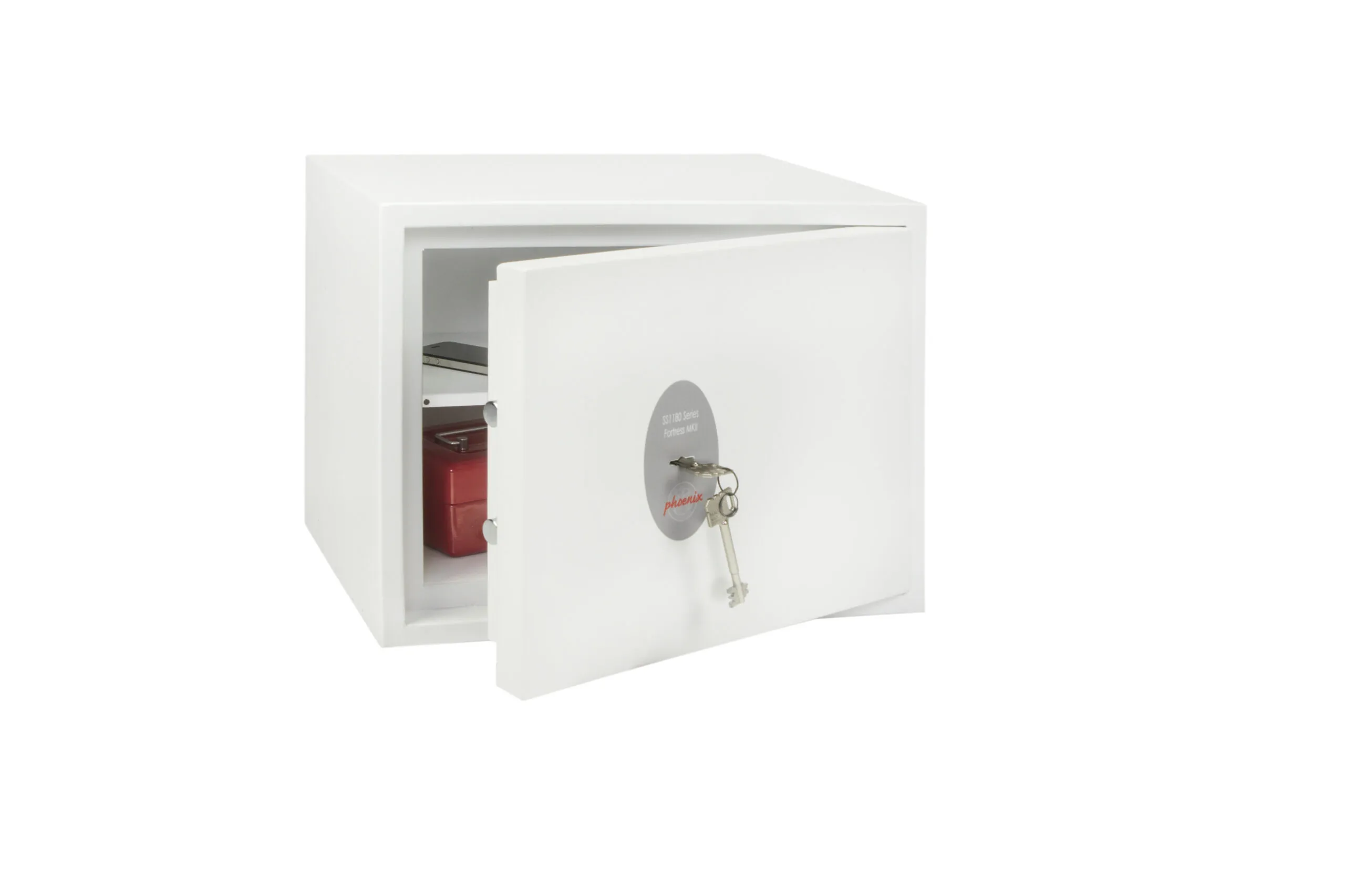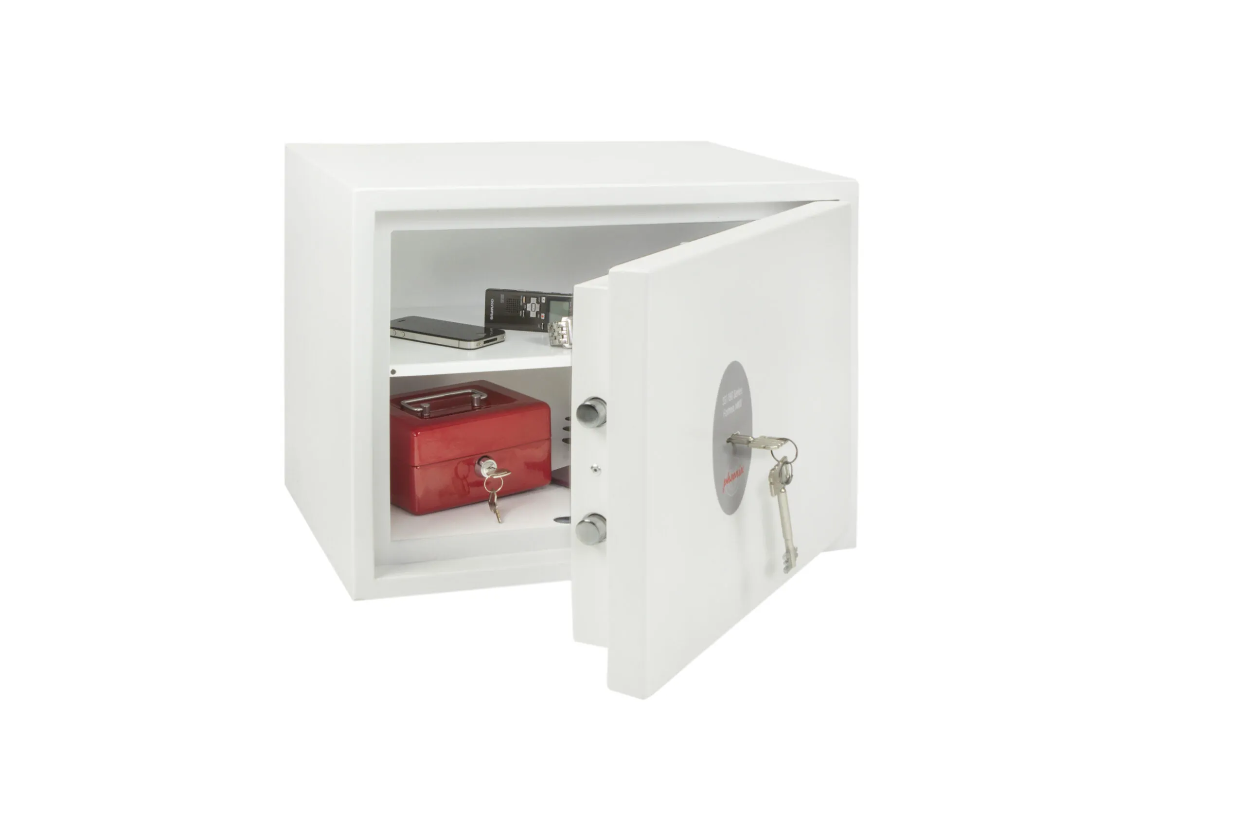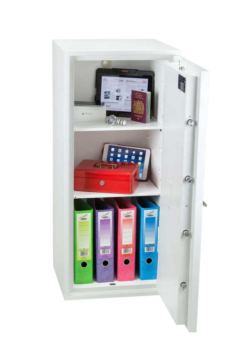 SECURITY PROTECTION – Tested to the prestigious European S2 Security standard (EN14450 – ECB.S Certified) giving cash cover of £4,000 or Valuables cover of £40,000 | APPROVALS – UK Police approved (Secured by Design scheme) and the Association of Insurance Surveyors (AiS) | CONSTRUCTION – Double wall construction with anti drill plates and re-locker protection for the door provide a safe of great strength | FIXING – Ready prepared for floor fixing, with fixing bolts for concrete supplied | COLOUR – Finished in a high quality scratch resistant White paint RAL9003 | Suitable for storage of controlled drugs whose active ingredients do not exceed 500 grams