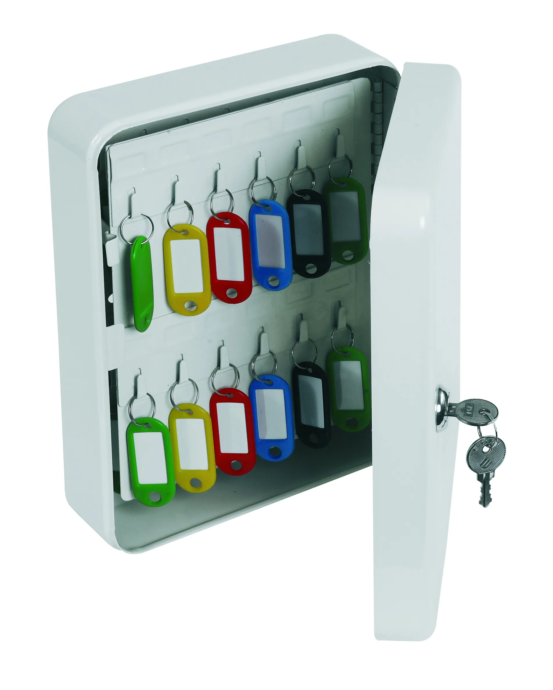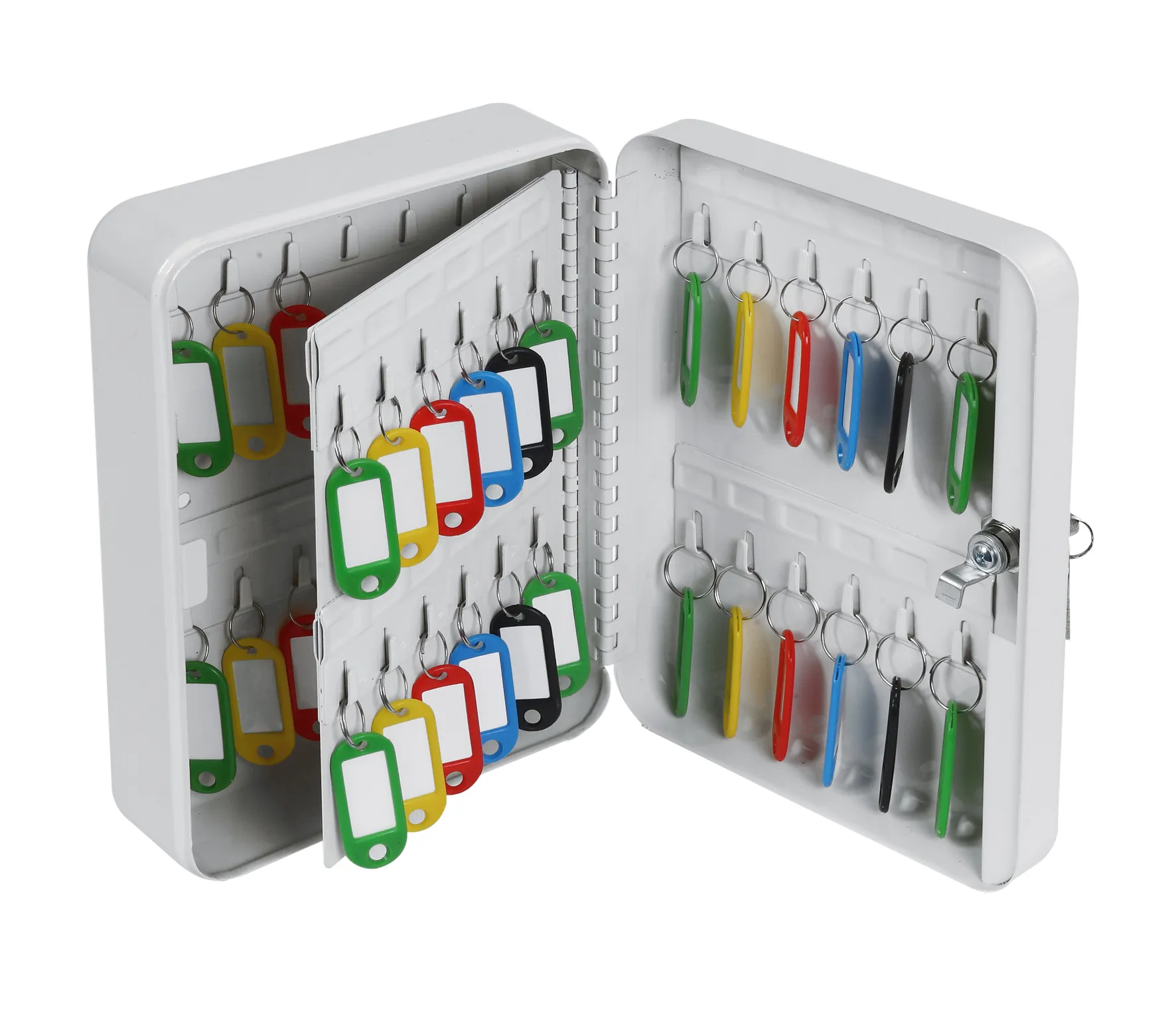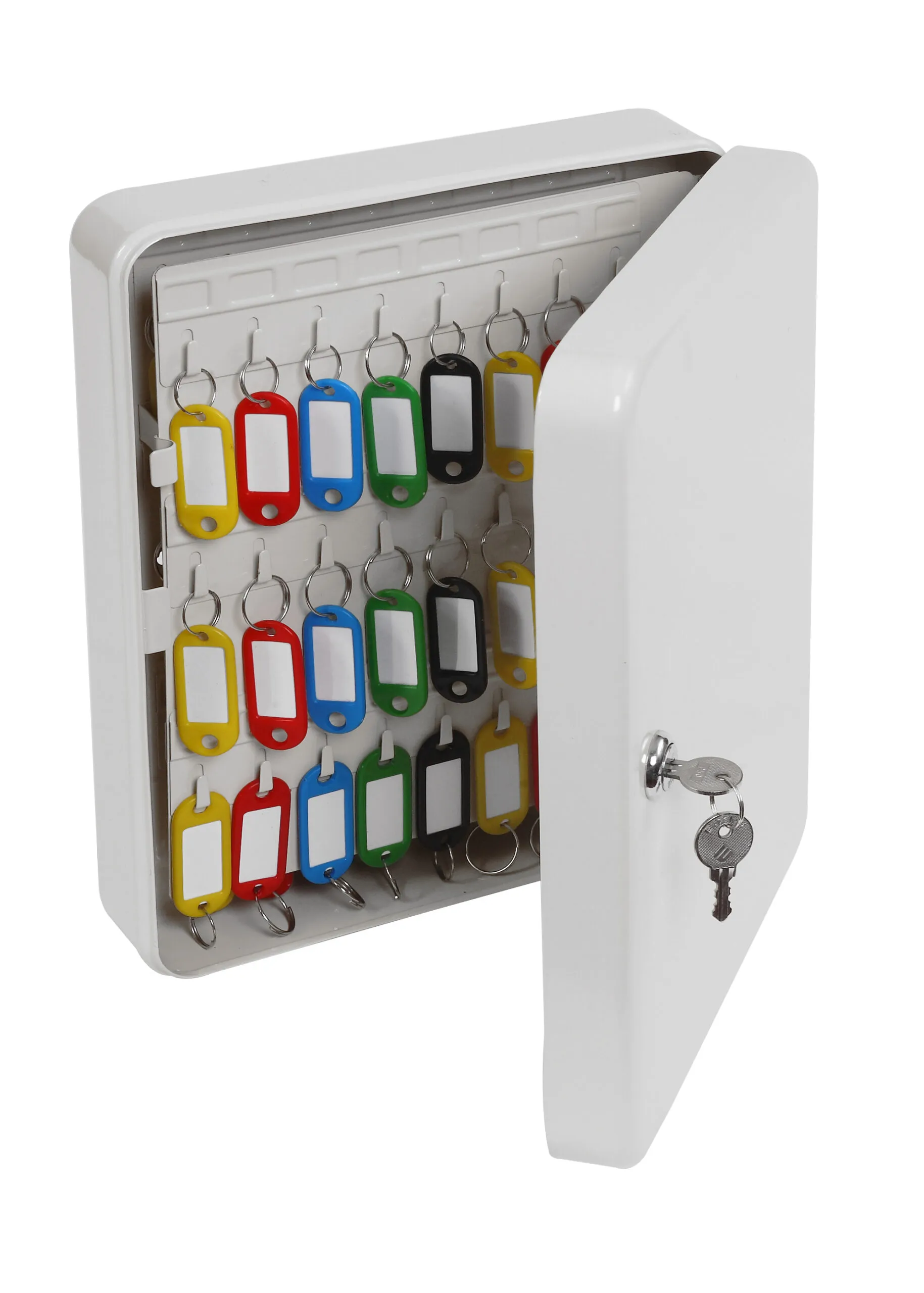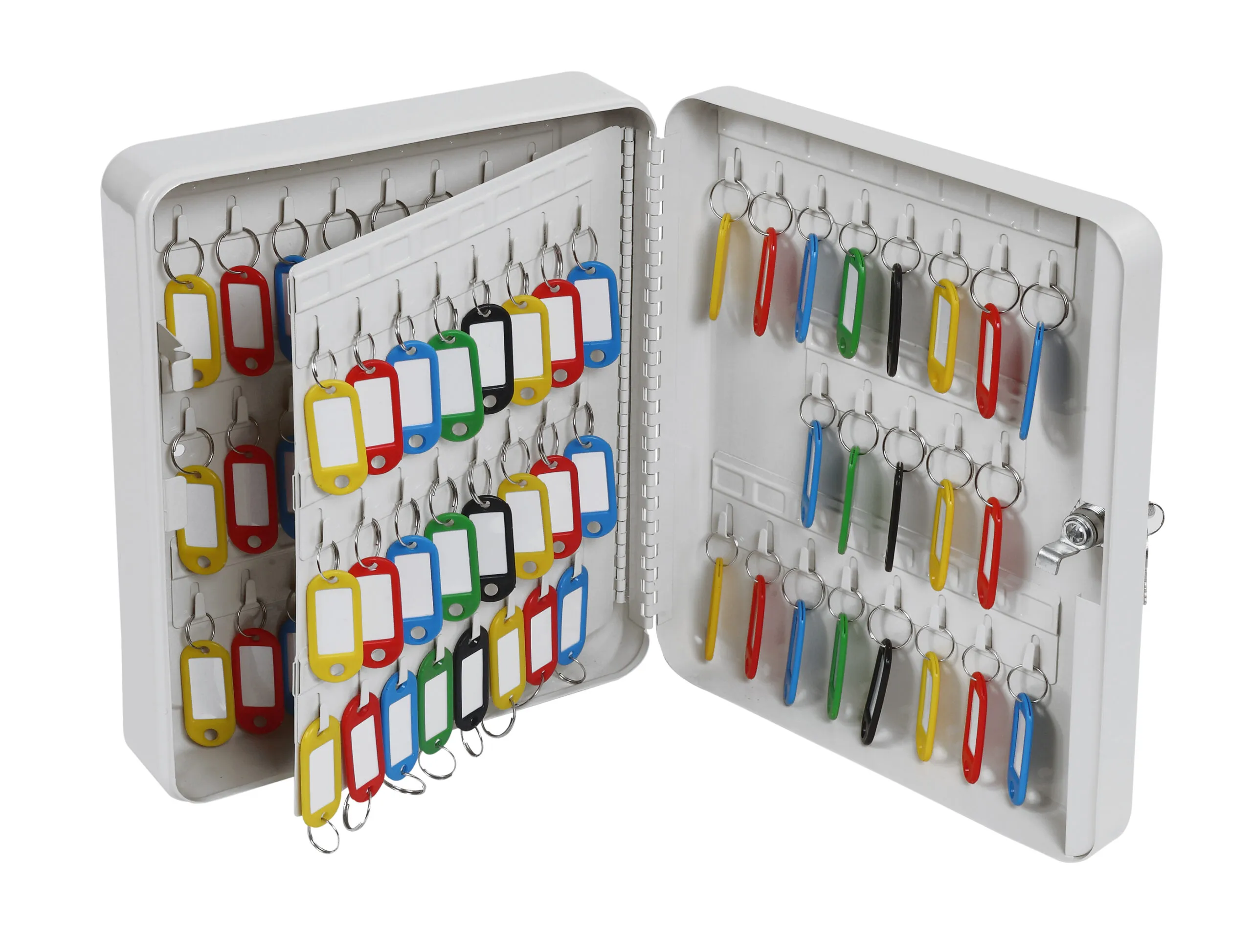 NO. OF KEY HOOKS – 20, 48 or 93 | LOCKING – Fitted with a high quality key lock supplied with two keys | FIXING – Ready prepared for fixing to the wall with fixings supplied | COLOUR – Finished in a high quality scratch resistant powder coat Grey paint.